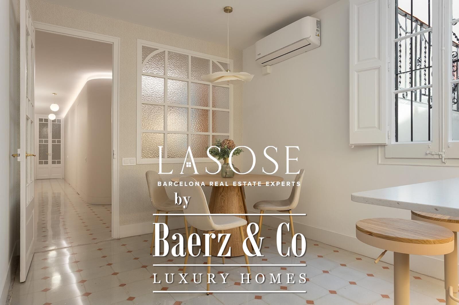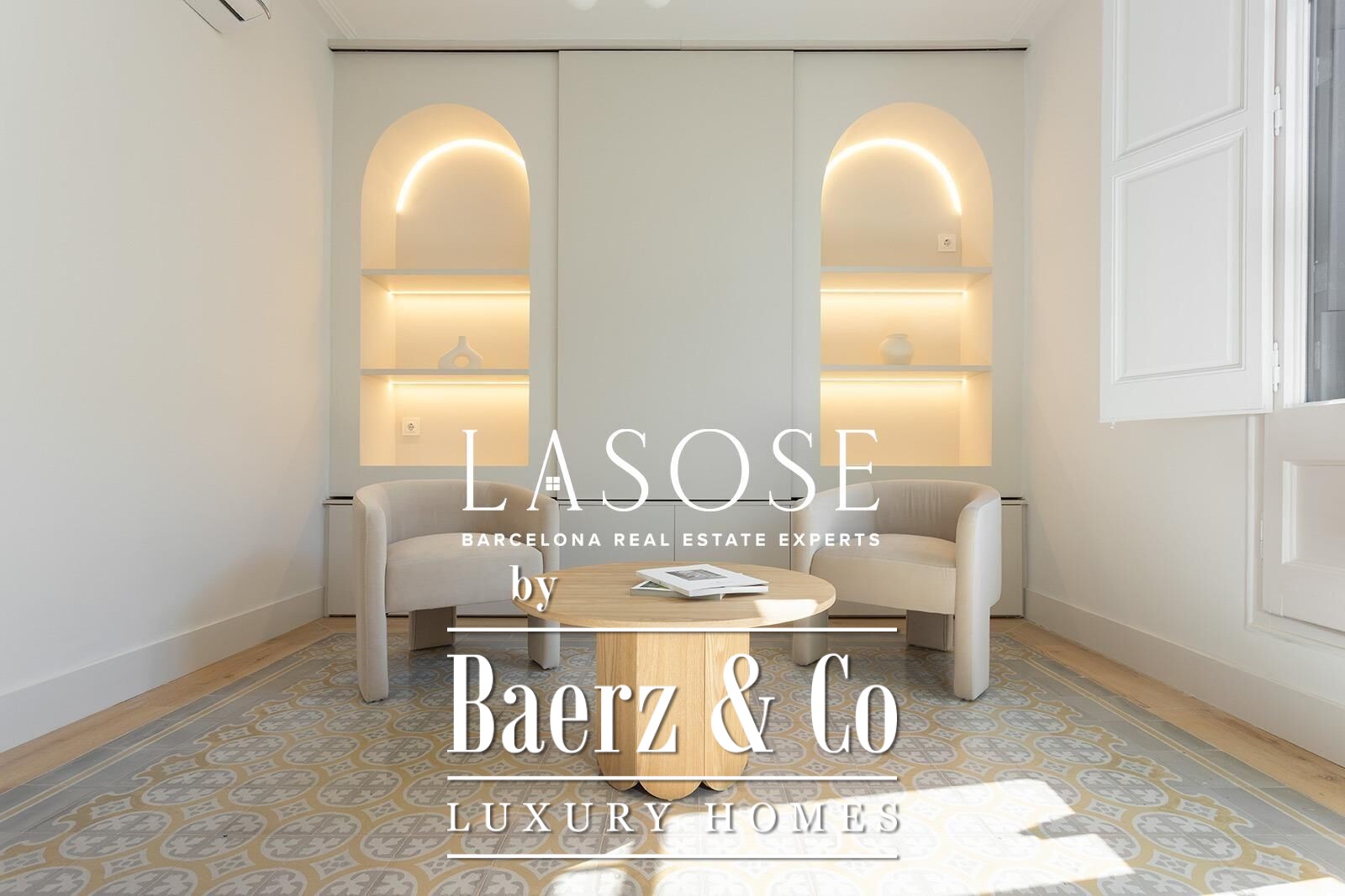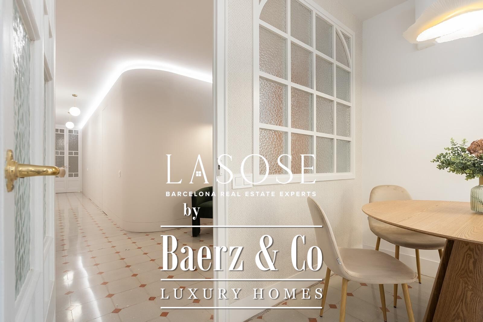 Apartment Barcelona is een residentie waar erfgoedarchitectuur harmonieus samengaat met eigentijdse renovatie, gelegen op de bovenste verdieping in Eixample. Het appartement van 115 m², volledig vernieuwd in 2025, geniet van overvloedig natuurlijk licht dankzij het zuidoostelijk georiënteerde balkon, waardoor de living zich vult met warmte en u vanuit de lounge een vrij uitzicht heeft. Originele hydraulische vloertegels en een zorgvuldig gerestaureerd Catalaans plafond benadrukken het vakmanschap uit de periode, terwijl moderne verlichting, stijlvolle badkamers en gloednieuwe apparatuur naadloos opgaan in het verfijnde geheel van dit huis.