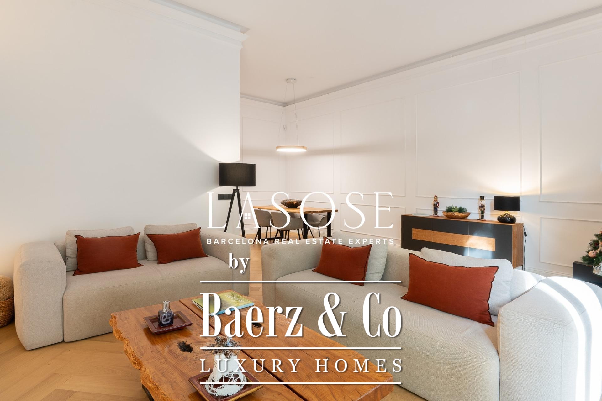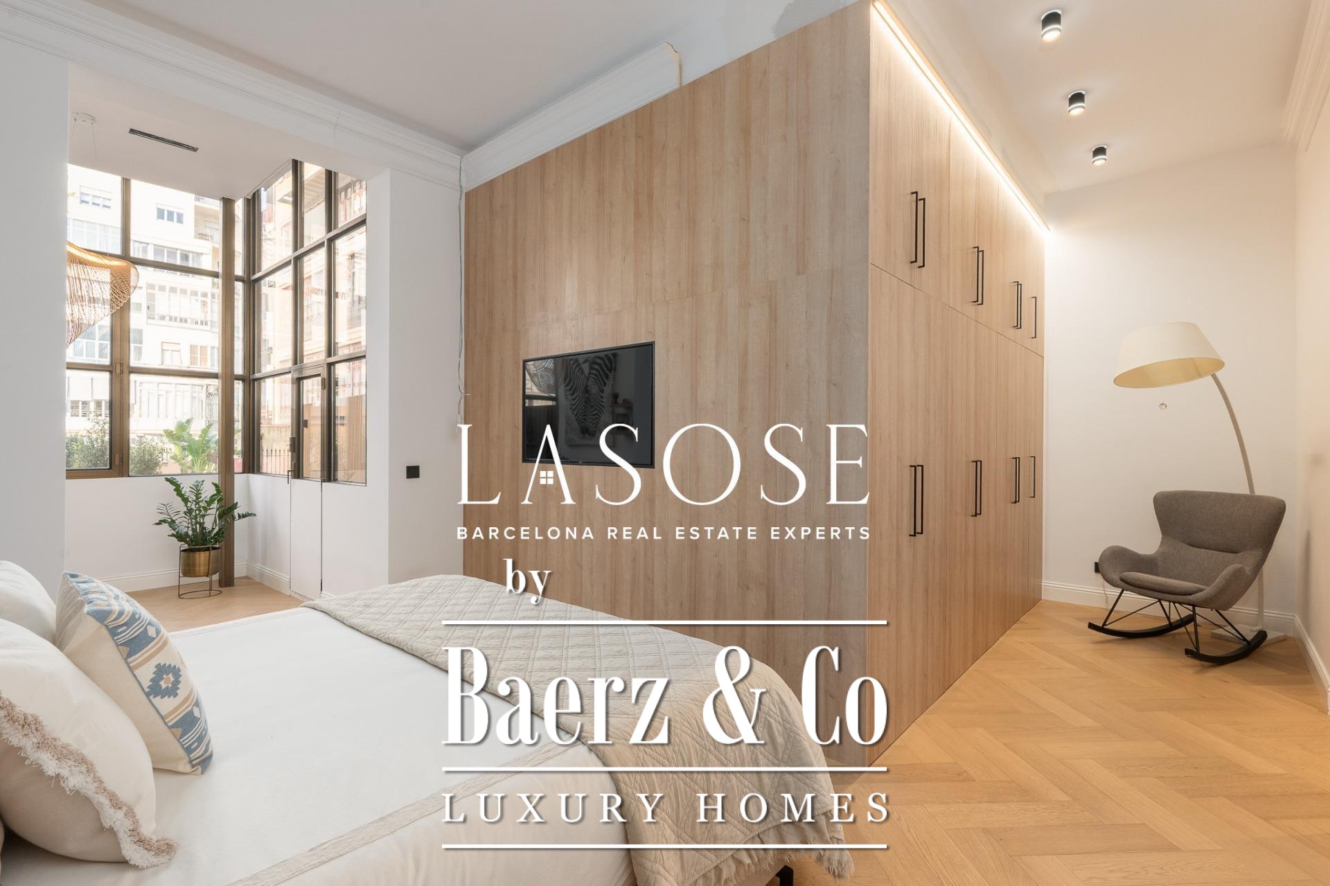 Dit modernistische appartement in het Barcelona Quadrat d'Or is een zeldzame kans, met 150 vierkante meter zorgvuldig gerestaureerde woonruimte en een uitzonderlijk achterterras van circa 100 vierkante meter. De woning maakt deel uit van een beschermd gebouw en is in 2024 volledig gerenoveerd met hoogwaardige afwerkingen. Erfgoedkenmerken zijn behouden gebleven, waaronder buitenschrijnwerk in eikenhout, hoge binnendeuren en unieke inbouwkasten, wat bijdraagt aan een gevoel van duurzame kwaliteit.
