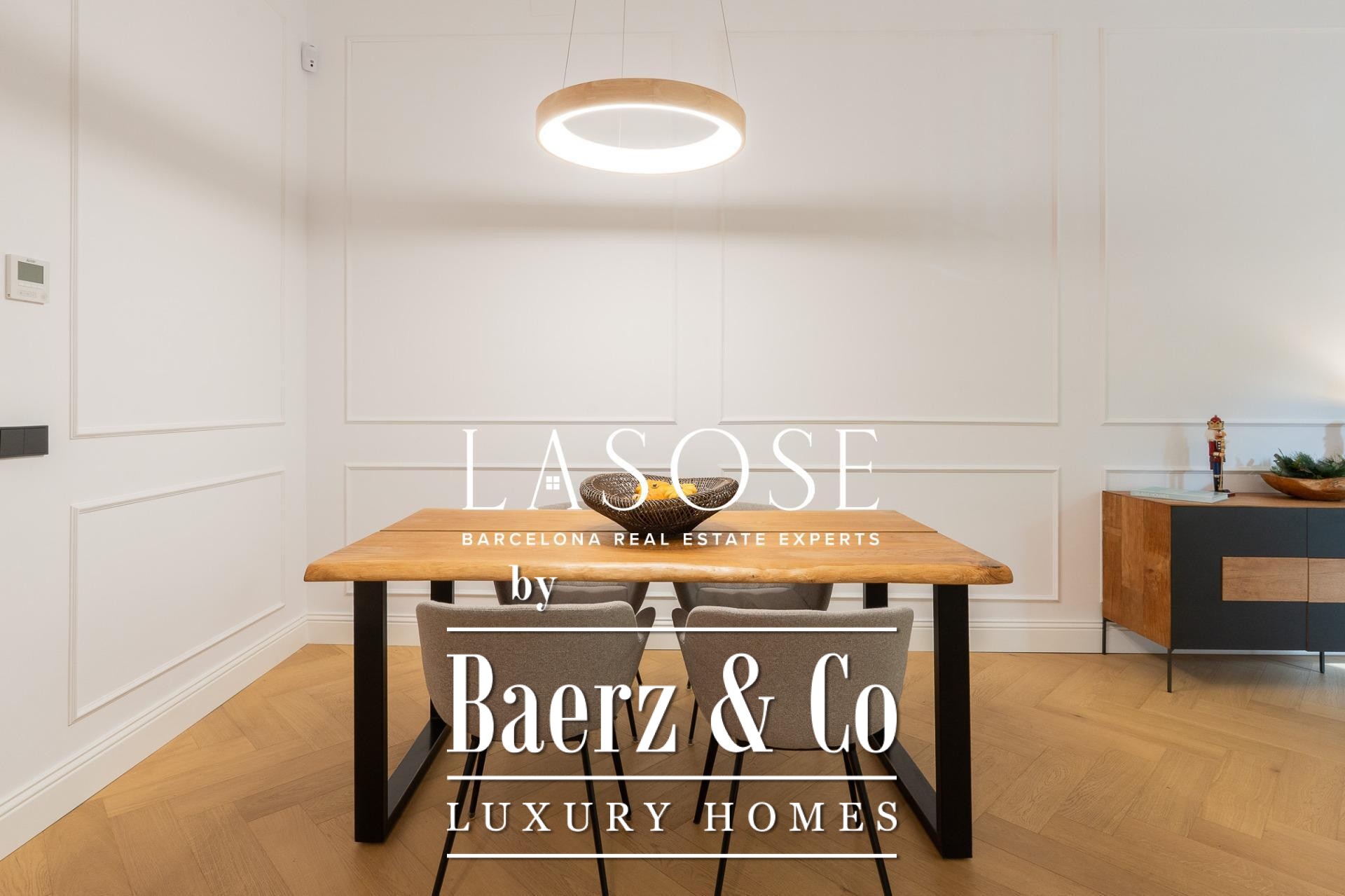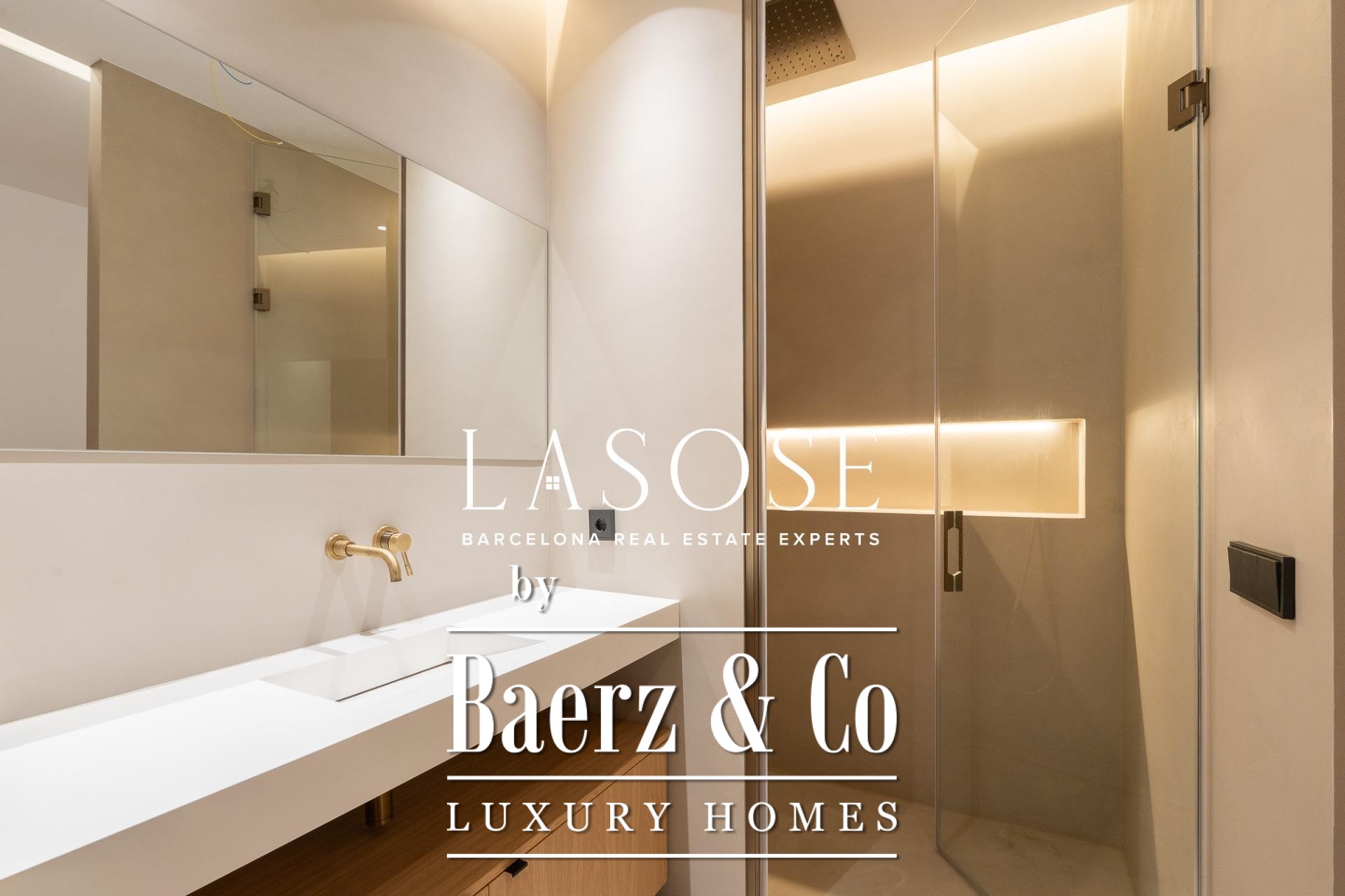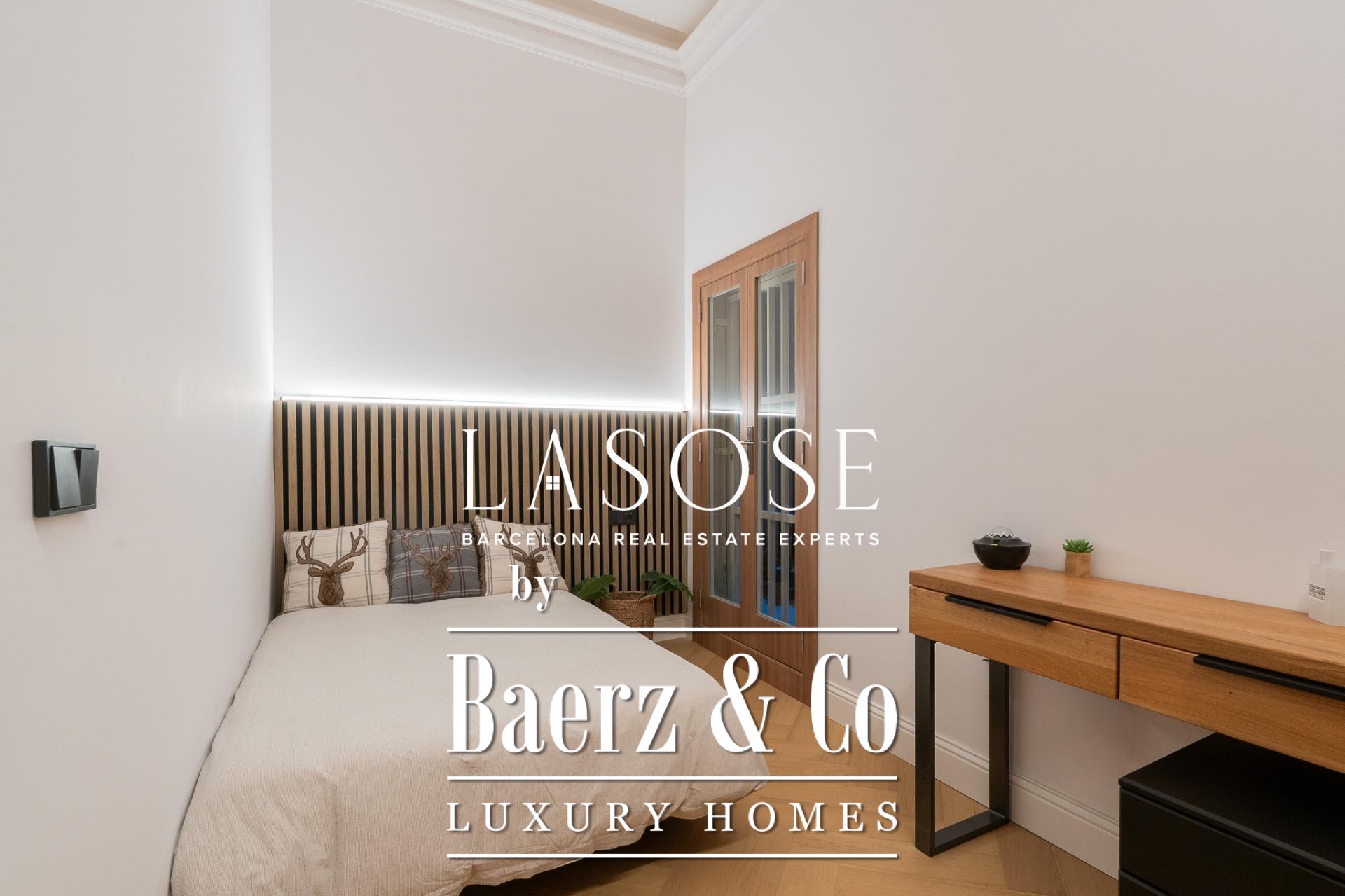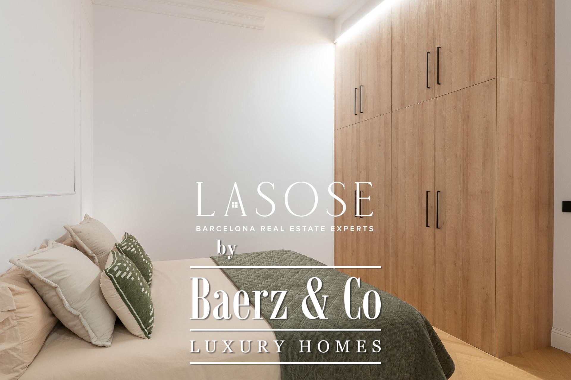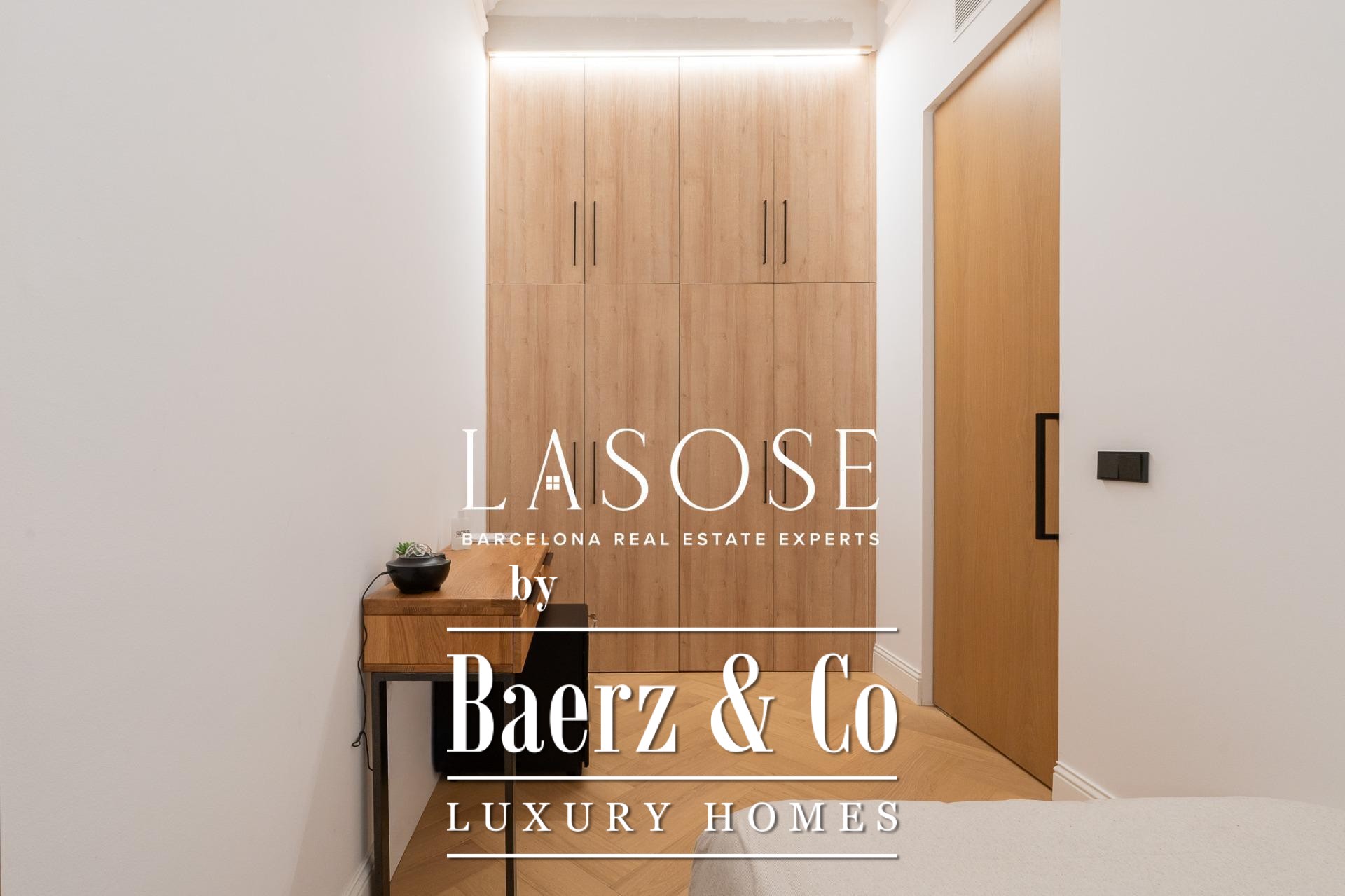 De indeling wordt gekenmerkt door een royale, zelfstandige woon- en eetkamer met hoge plafonds, drie slaapkamers—waaronder een verfijnde en suite, een tweepersoonskamer en een eenpersoonskamer—en twee complete badkamers. De volledig uitgeruste keuken is vormgegeven met een hedendaags ontwerp en eersteklas materialen, waardoor moderniteit en traditie naadloos samenkomen. Het balkon van circa 4,61 vierkante meter biedt veel licht, stadszicht en een directe verbinding met de sfeer van de Carrer de Casp.