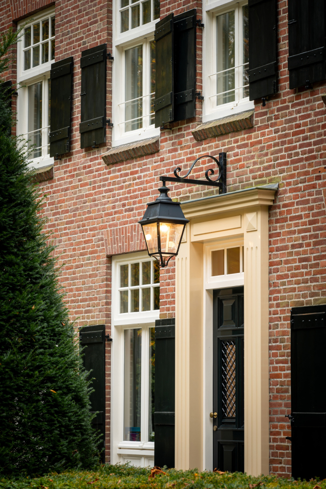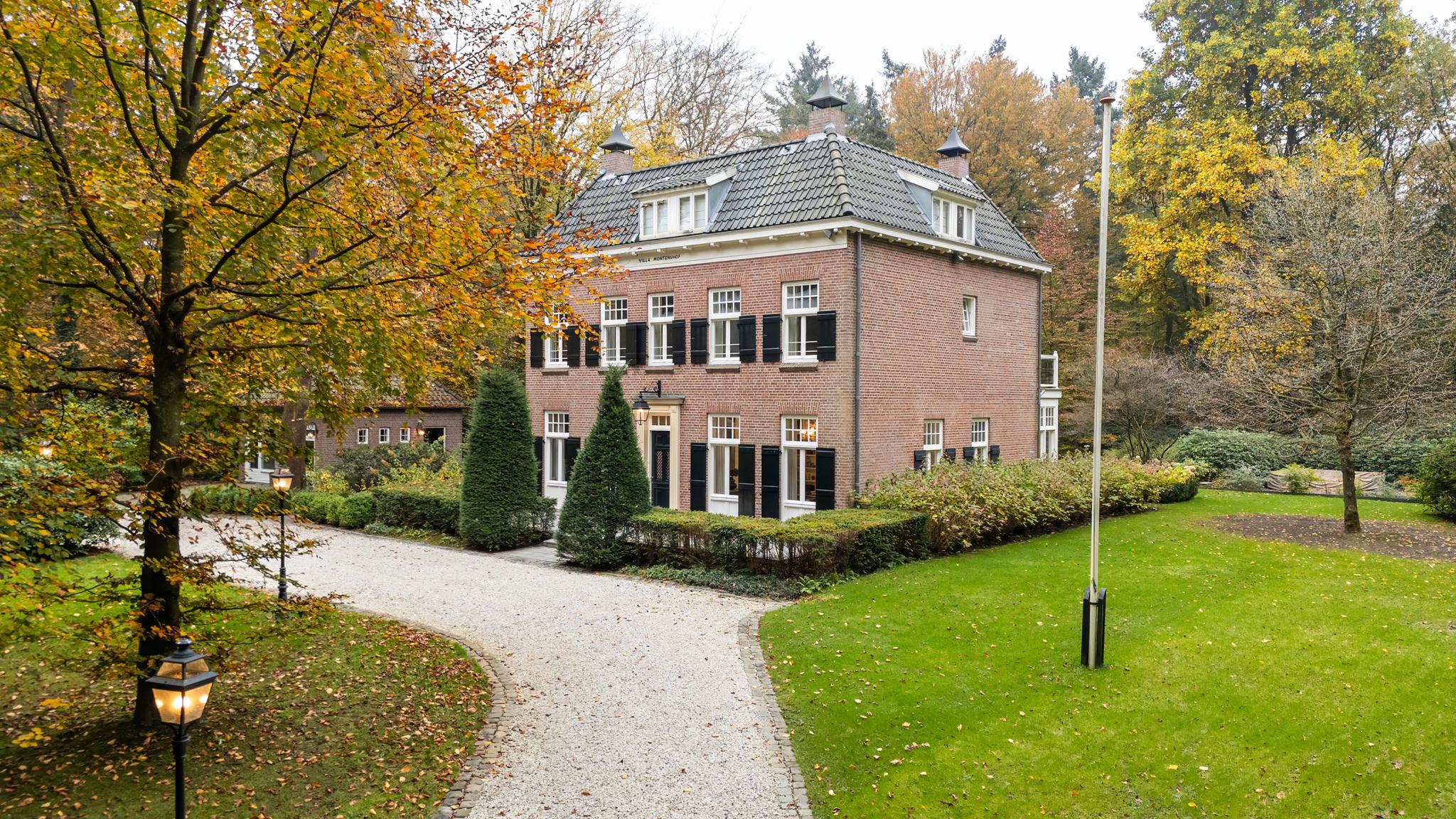 Via de statige oprijlaan, aan twee zijden uitkomend op de openbare weg (en afgesloten middels elektrisch bediende poorten) bereikt u de woning.