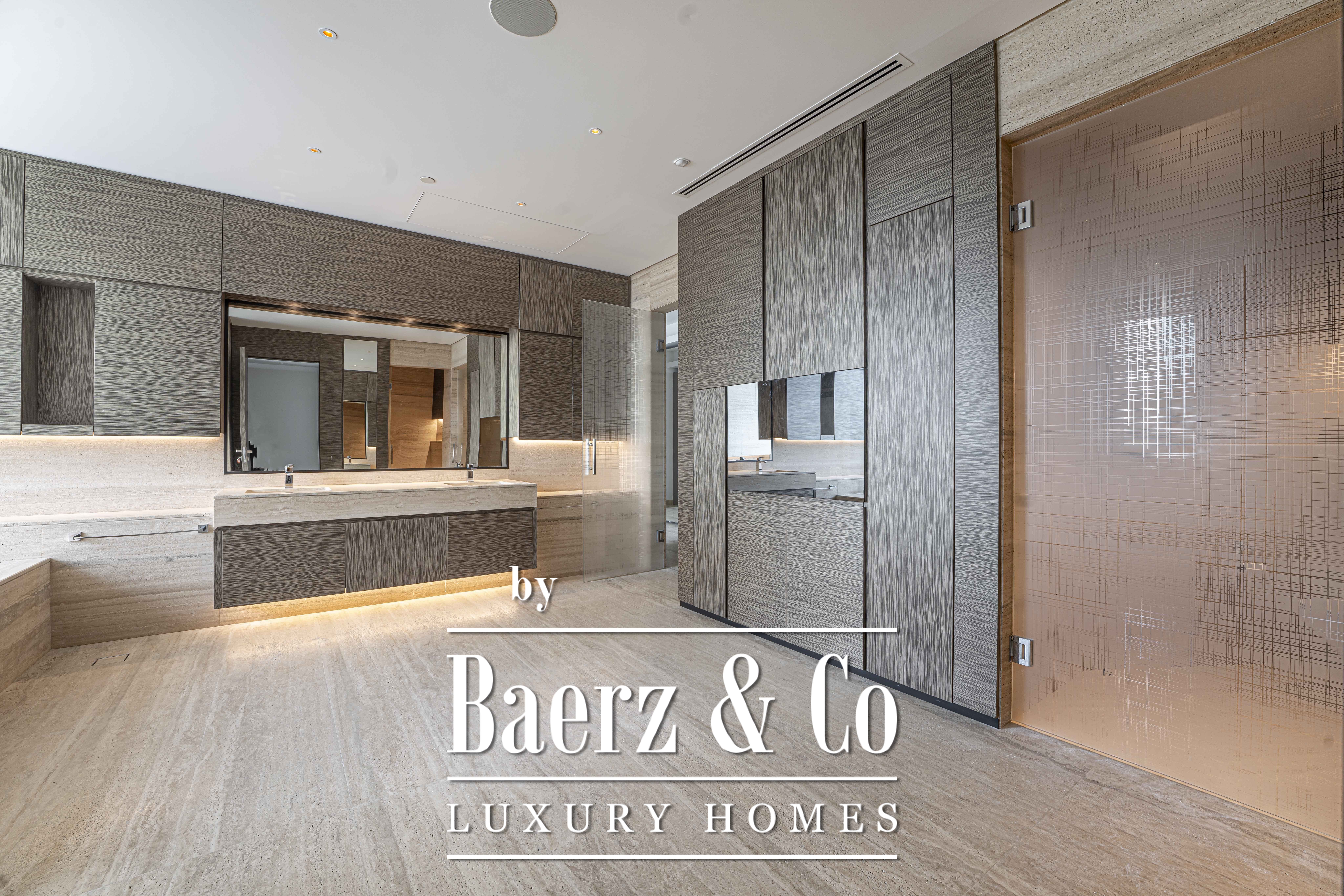Toegang verloopt via een privé-lift en leidt direct naar een open interieur waar zonlicht en indrukwekkende stadsgezichten het woongenot verankeren. De keuken is ingericht met ingebouwde Miele-apparatuur en maatwerk in Zabrone-hout, wat de esthetische eenheid versterkt. De hoofdslaapkamer imponeert door het royale formaat, twee inloopkasten en een ruime badkamer. De gastensuite beschikt over een eigen badkamer en discreet ingebouwde kasten. Er is eveneens een aparte kamer voor personeel met een aparte natte keuken.