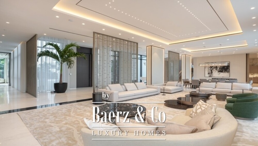 Voor ontspanning biedt het souterrain een bioscoop, speelkamer en volledig uitgeruste gym; privéruimtes met uiteenlopende mogelijkheden. De wellness-suite beschikt over een sauna, stoombad, jacuzzi en massageruimte. Alle zes slaapkamers hebben een inloopkast en sluiten naadloos aan op de rustgevende buitenruimte, waar een dakterras, pergola, BBQ-zone en een van de grootste infinity-pools van de gemeenschap het uitzicht omlijsten.