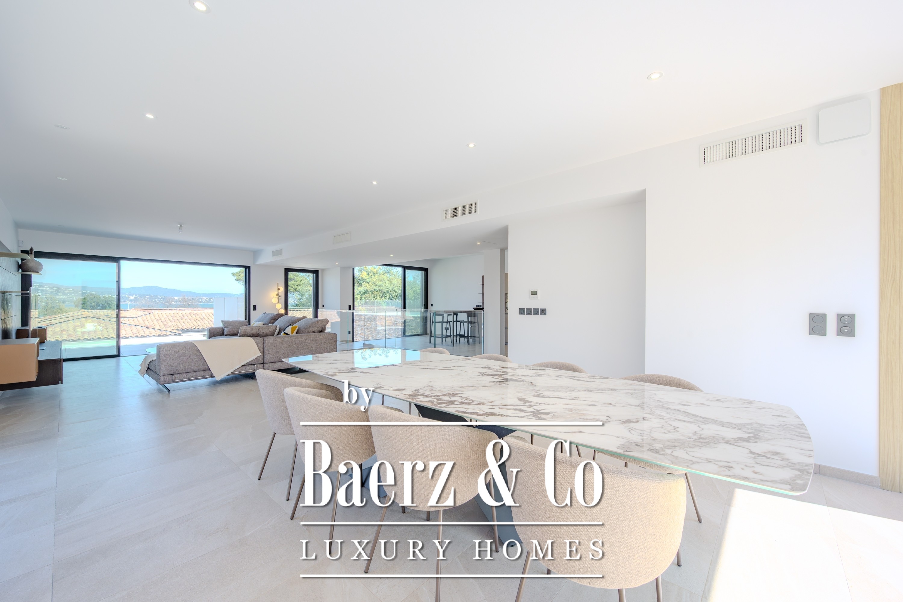 De indeling is zorgvuldig en royaal, met een ruime master suite en daarnaast drie slaapkamers, elk met eigen badkamer. Het open interieur sluit naadloos aan op twee royale terrassen en een privézwembad, waar licht en ontspanning het dagritme bepalen.