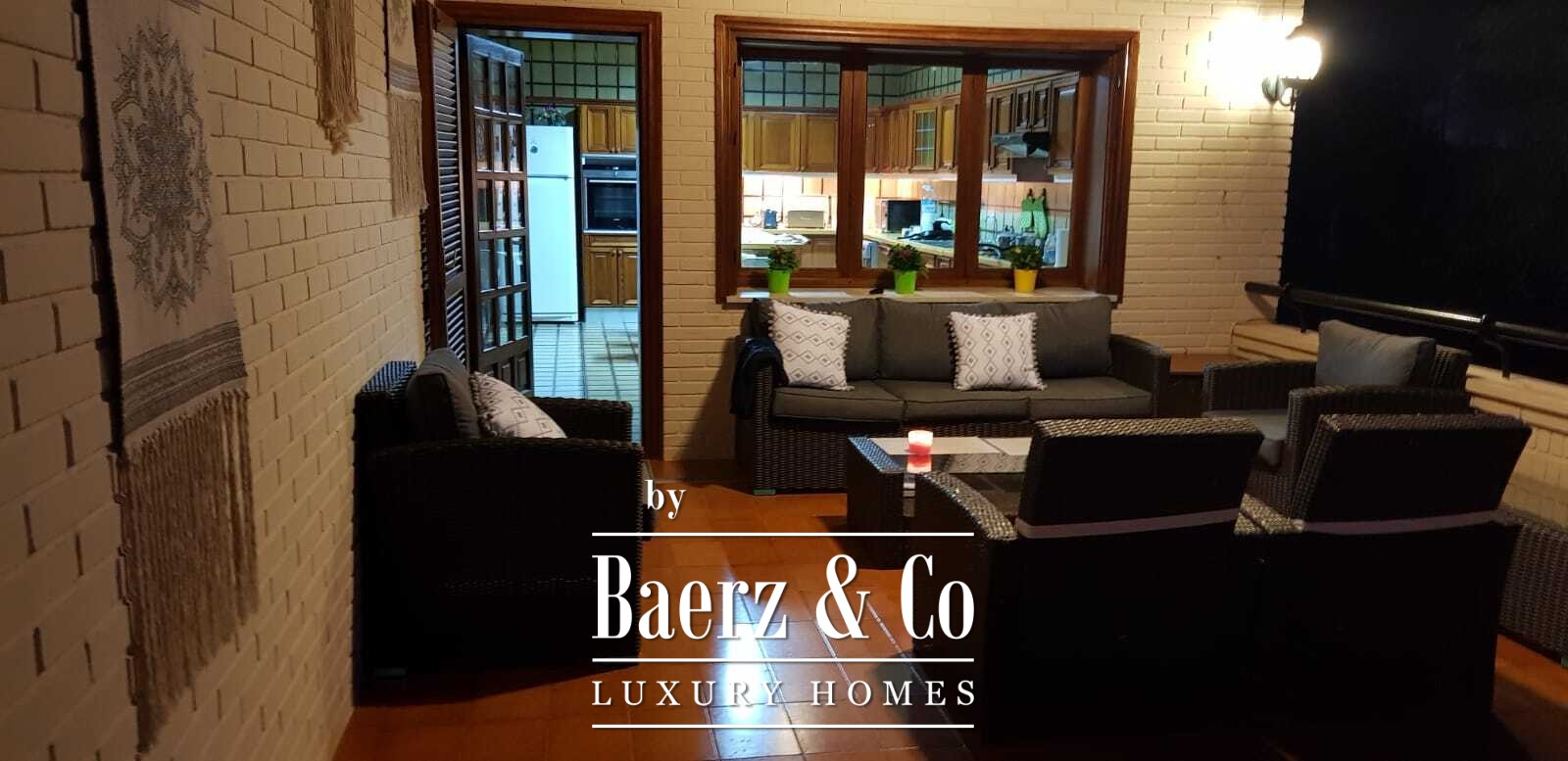 Het huis bestaat uit 4 grote slaapkamers, 5 badkamers en een gastentoilet. De woonkamer heeft een grootte van 100 vierkante meter, die samen met een zeer ruime keuken en eetkamer de begane grond vormen. Het beschikt ook over een groot zwembad met een kindergedeelte.