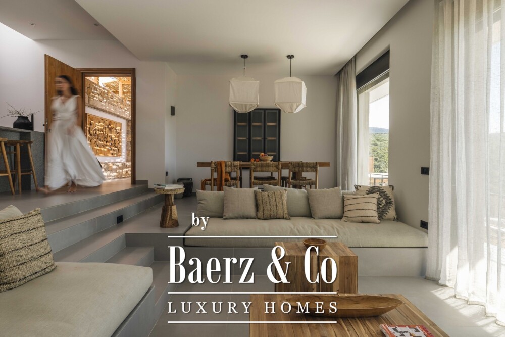 Villa Lefkada bevindt zich op een verhoogd perceel van 4.191 m² met een zachte helling en biedt panoramisch uitzicht over de baai en het golvende landschap van het eiland. Deze villa onderscheidt zich door ingetogen luxe en een uitgesproken gevoel van privacy, op slechts 940 meter van het dichtstbijzijnde strand. Binnen is in elk detail aandacht besteed aan comfort en elegantie. De master suite vormt een toevluchtsoord binnen het huis, met toegang tot een privébalkon van 27 m² dat een onbelemmerd uitzicht op zee biedt, evenals een en suite badkamer ingericht voor ultieme rust.