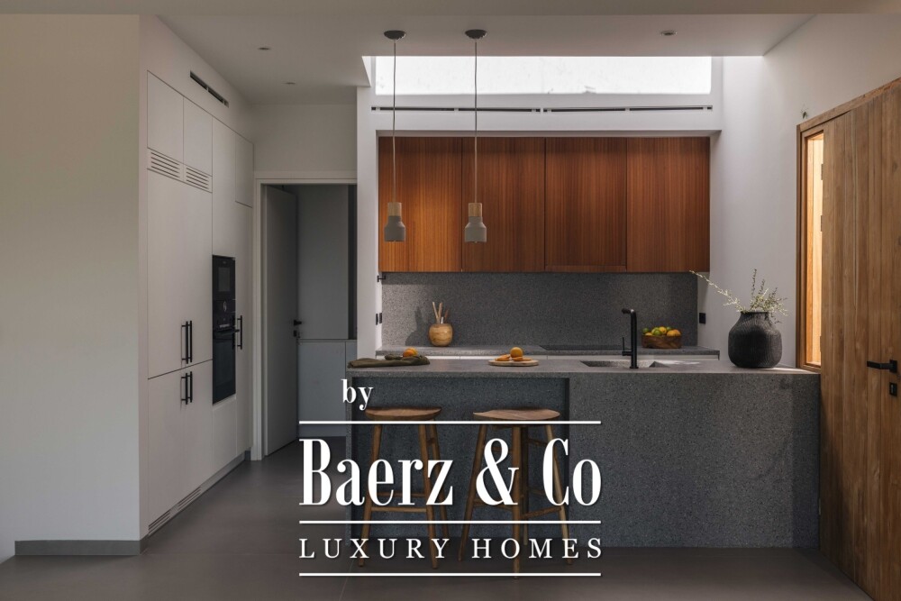 De volledig uitgeruste keuken gaat naadloos over in de verfijnde woonkamer, waardoor zowel intieme avonden als stijlvol ongedwongen samenzijn mogelijk zijn. De tweede vleugel van de villa, verbonden met het hoofdverblijf via een met riet begroeide pergola, beschikt over vijf slaapkamers, elk met een eigen badkamer. In dit gedeelte creëren een fitnessruimte van 47 m² en een privébioscoop een omgeving waar gericht ontspannen en actief bezig zijn samenkomen, voor bewoners én gasten.