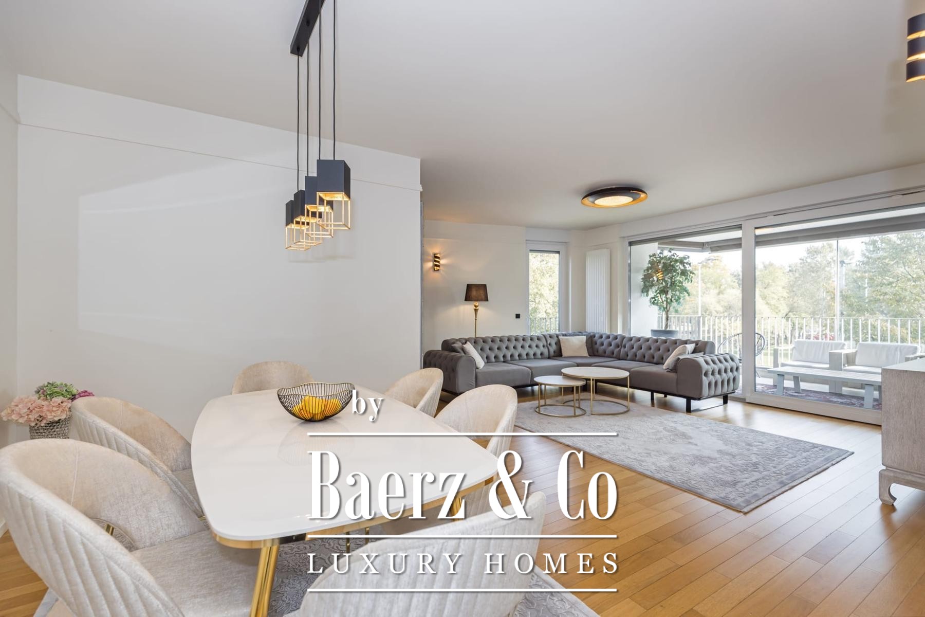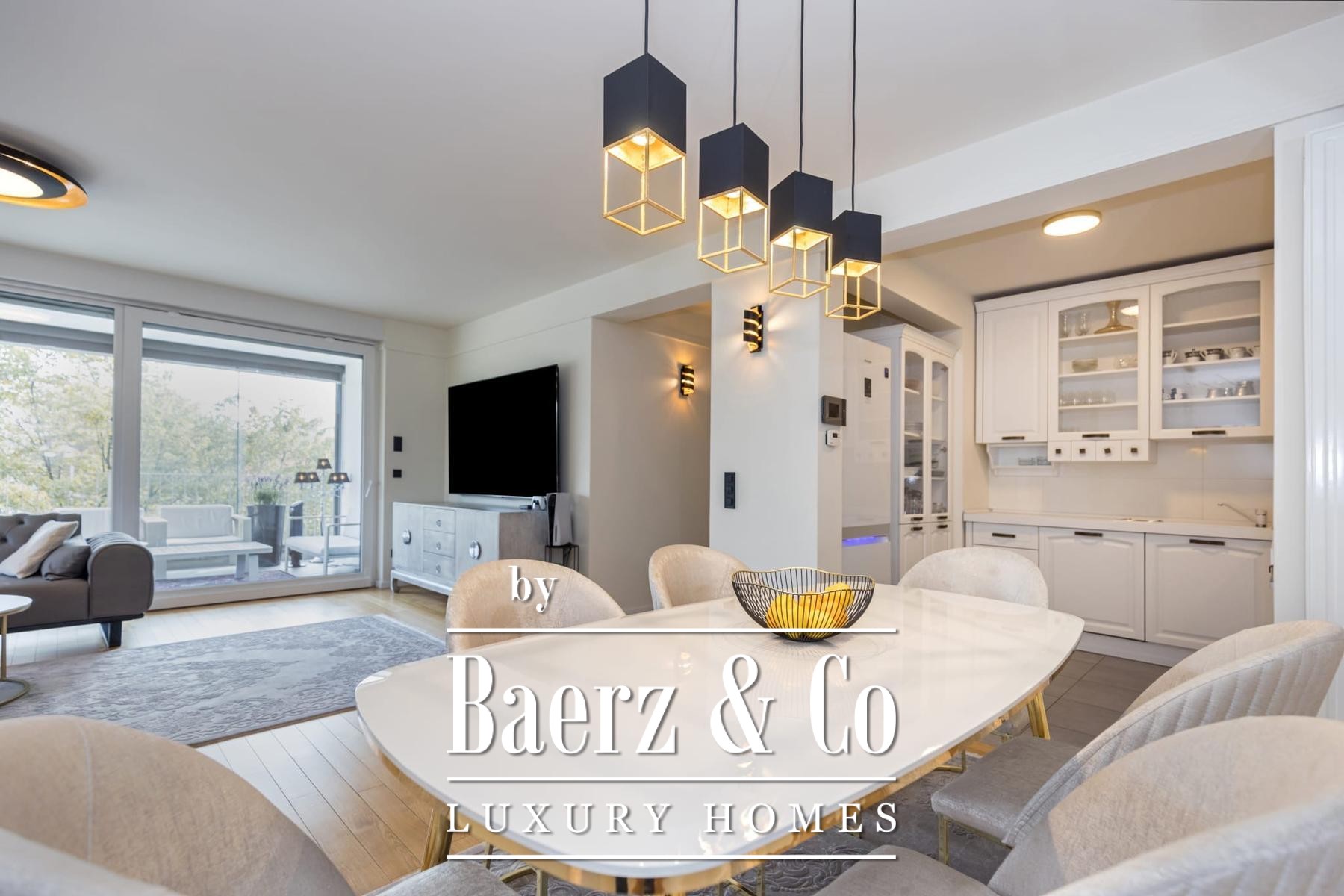 Het doordachte plan biedt een entreehal die overloopt in een open living, keuken en eetruimte, drie slaapkamers en drie badkamers, alle afgewerkt volgens moderne maatstaven. Extra voorzieningen omvatten een aparte bergruimte en een privéparkeerplaats in de garage, waarbij comfort en discretie centraal staan.