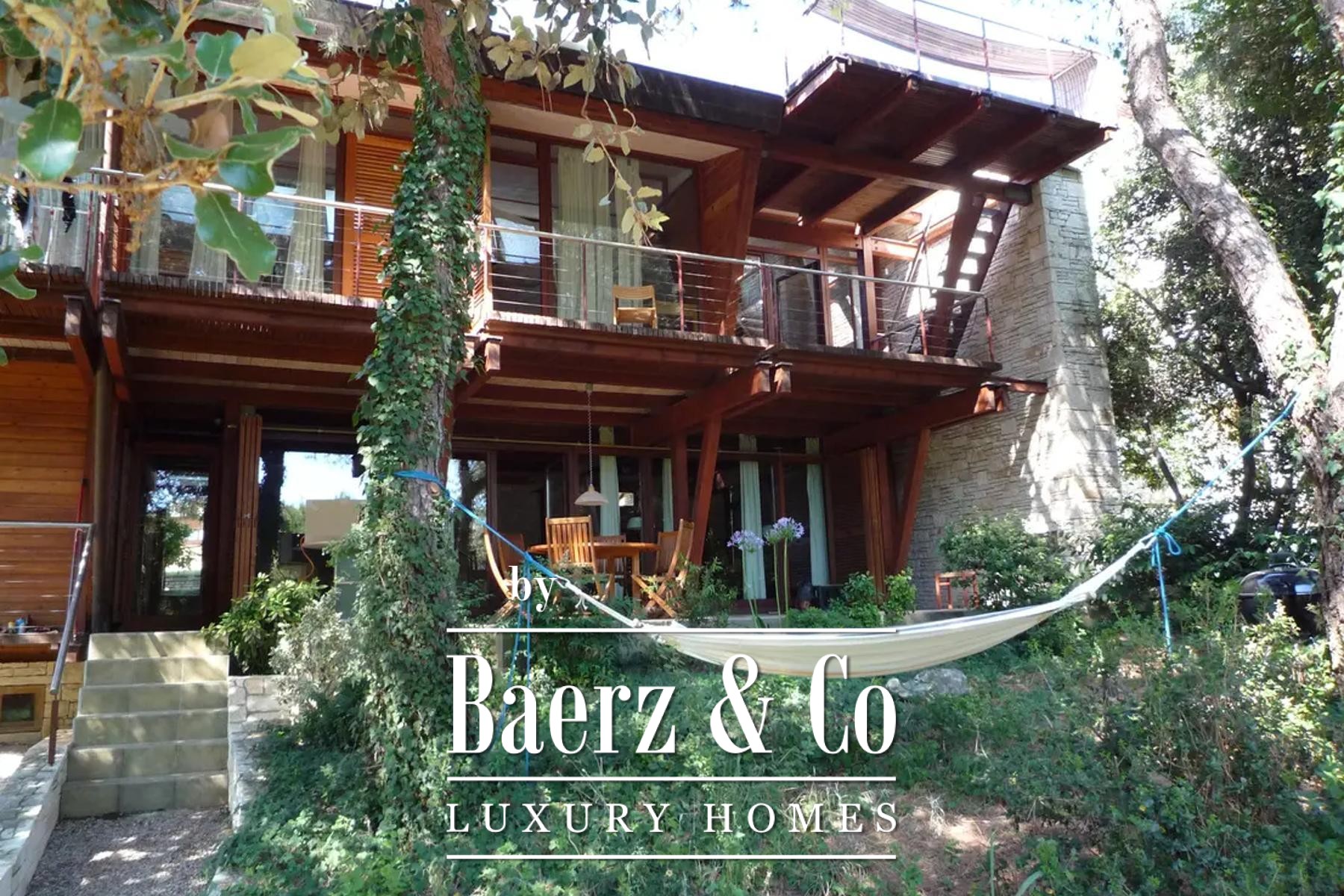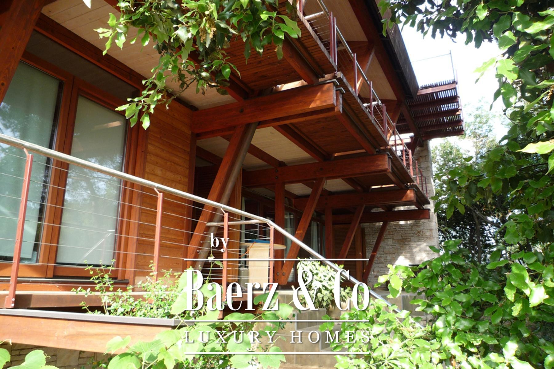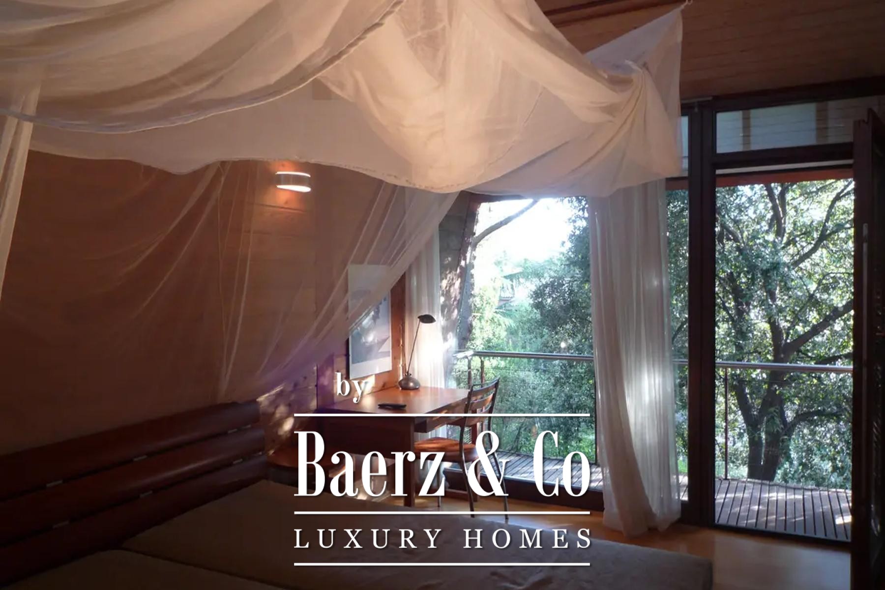 Boven bieden vier serene slaapkamers toegang tot balkons. Een galerij en schaduwrijke terras verbinden met een dakterras voor kalme, beschouwende momenten boven de tuin. Op de benedenverdieping bevindt zich een glazen zomerse keuken en een wellnessruimte met sauna, zwembaden en een aangelegde terras; een kelder biedt opslagruimte, centrale systemen en een wasruimte.