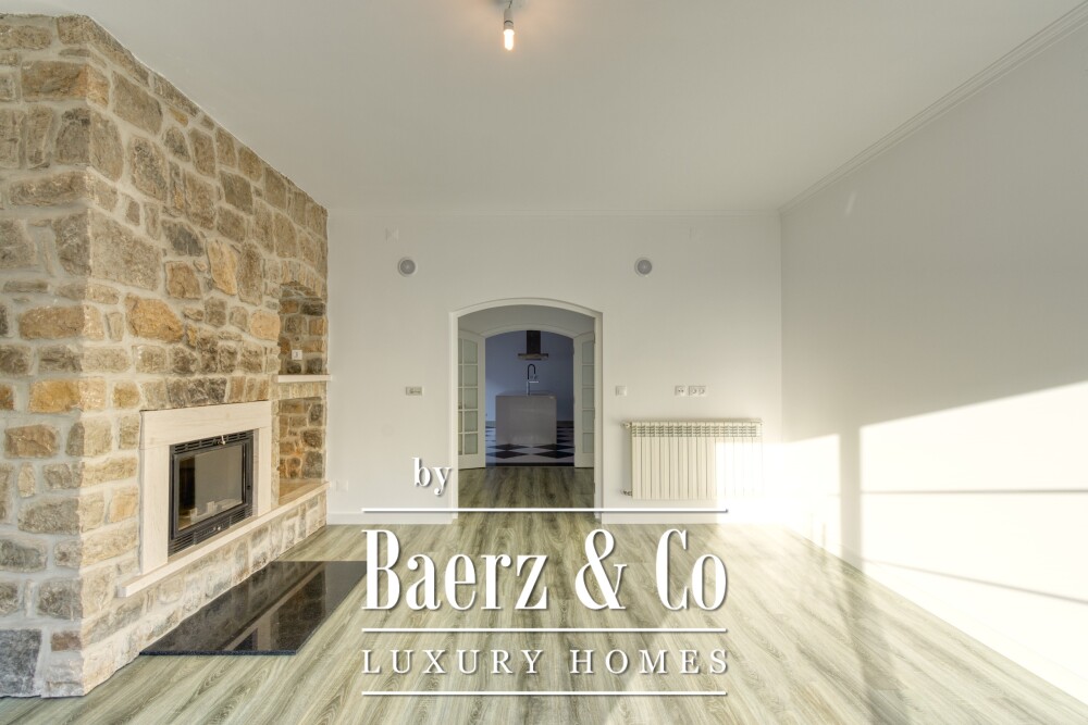 Традиционный фасад скрывает современные интерьеры с изысканными отделками и впечатляющими пространствами. Гостиная на основном этаже (58 м²) располагает камином, задающим атмосферу уюта, соседняя столовая площадью 29 м² и отдельная игровая комната на 27 м² способствуют лёгкости общения гостей. Кухня — современное пространство на 26 м² — полностью оборудована для домашних кулинаров. На первом этаже расположены две просторные апартаменты, а также кабинет площадью 22 м² с собственным камином, создающий условия для работы или размышлений. На верхнем этаже две дополнительные спальни-сьют с собственными балконами и видами на море открывают спокойную панораму Атлантики.