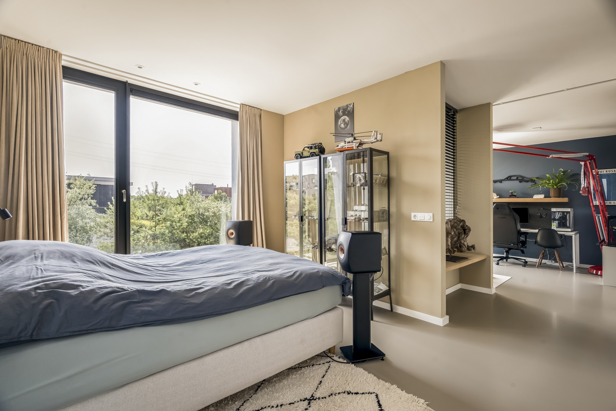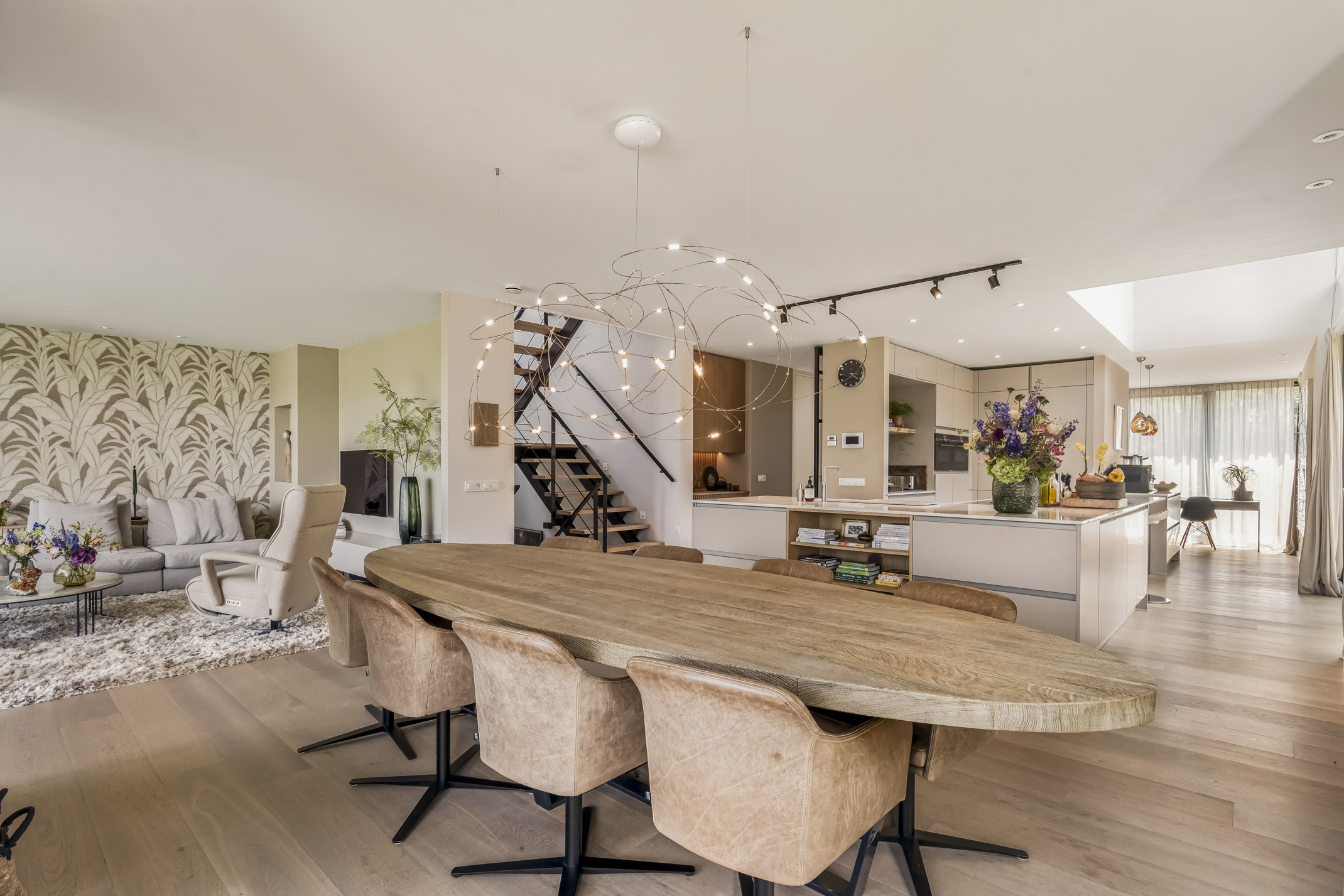 На трех жилых этажах и в изысканном цокольном уровне располагаются шесть спален с возможностью создания седьмой, три ванные комнаты, а также мастер-сьют с гардеробной и отдельно стоящей ванной с видом на воду. Кухня сочетает мастерство исполнения и повседневный комфорт: индукционная плита Bora с интегрированной вытяжкой, кран Quooker, вместительное холодильное оборудование и отдельная кофейная зона подчеркивают внимательность к деталям и уровню гостеприимства.