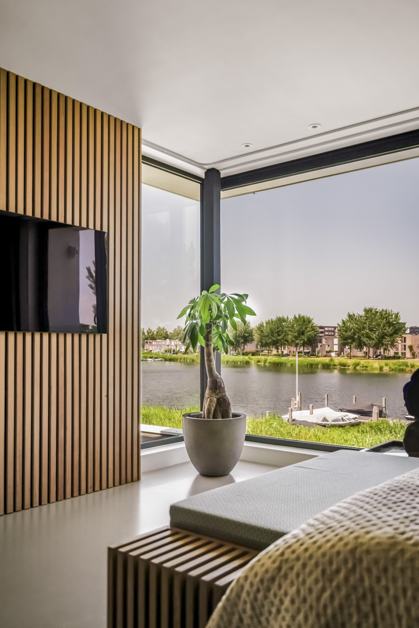 Отдельно стоящая вилла Amsterdam Rieteiland Oost предлагает захватывающий опыт жизни на воде, объединяя приватность, архитектурную чистоту и тесную связь с природой. Построенная в 2018 году, эта вилла занимает 380 м², включая встроенный гараж, на тихом участке, ограниченном открытой водой. Частная пристань обеспечивает прямой доступ к водным прогулкам и плаванию непосредственно из ухоженного сада, а панорамные окна и высокие потолки наполняют пространство ощущением света и свободы.
