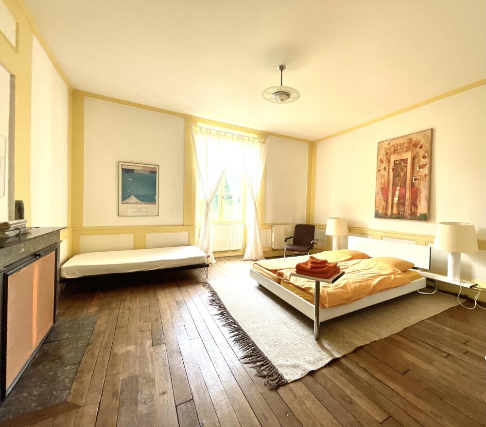 Estate Langres — это редкая возможность обосноваться в восстановленном замке, расположенном на более чем 10,5 гектарах тихого паркового ландшафта между Шомоном и Лангром. Площадь усадьбы составляет 375 м²: здесь 15 помещений, в числе которых 9 спален, 2 ванные комнаты и 3 отдельные туалетные комнаты. Каждое пространство пропитано сдержанным величием, а высокие потолки, открытые балки и оригинальные полы задают особый архитектурный ритм.