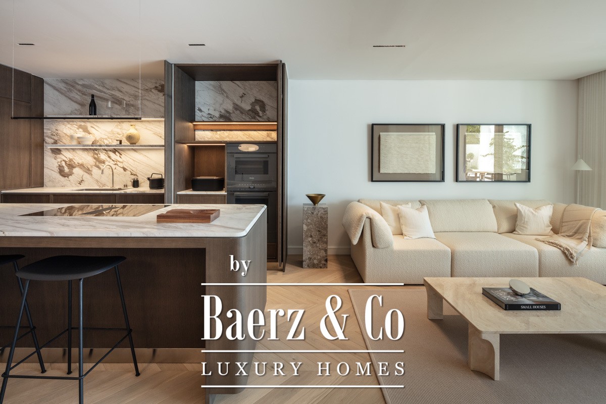 Апартаменты Marbella Golden Mile расположены в комплексе Puente Romano Resort, где свет и морской бриз формируют атмосферу спокойной утончённости. Эти апартаменты площадью 138 м² предлагают светлую открытую гостиную зону, объединённую с террасой, общим садом и видом на побережье благодаря панорамным стеклянным дверям от пола до потолка. Сочетание нейтральной цветовой гаммы и натурального дерева на полу отражает средиземноморский ландшафт, создавая ощущение гармонии в жилых и приватных пространствах.