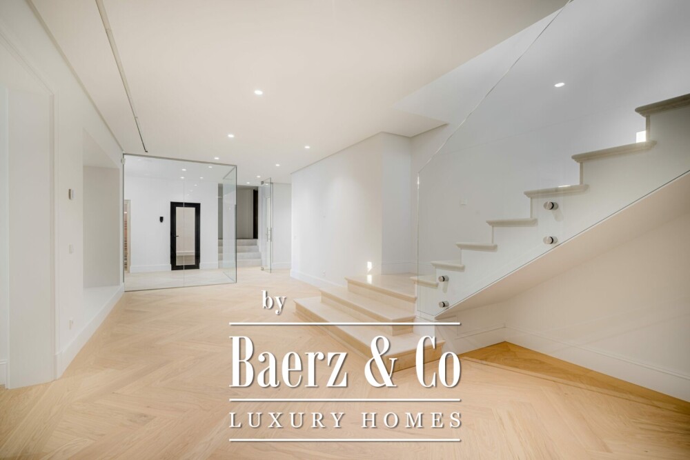 Внутри — 475 м² жилой площади, распределённой на трёх уровнях. Четыре спальни и шесть ванных комнат сочетают просторные открытые пространства с уединёнными уголками; в каждом помещении — нейтральные палитры и безупречная столярная отделка. Главная спальня занимает весь первый этаж, аутентична индивидуальной мебелью и видом на сад. Полностью оборудованная кухня с выходом в сад напрямую соединяется с зоной барбекю.