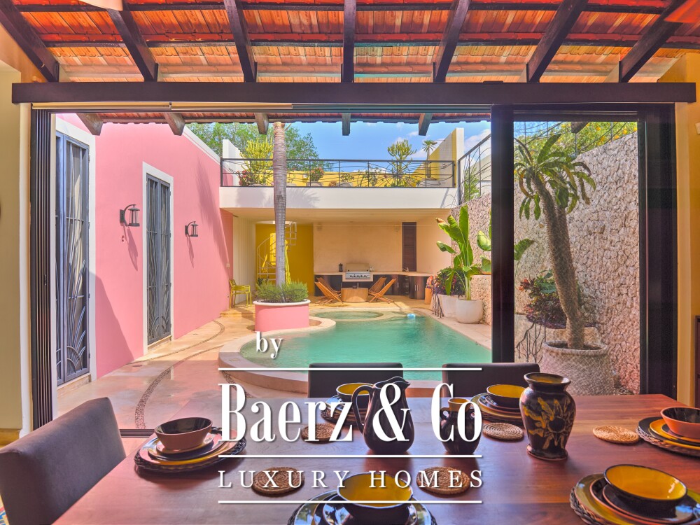 На территории располагается фильтрованный бассейн с гидромассажем, уединённые садовые зоны и место для барбекю, создающие атмосферу умиротворения. Терраса на крыше предназначена для утреннего кофе или тихих вечеров под майянским небом. Энергоэффективность обеспечивают солнечные панели и современные системы, а дом полностью меблирован и готов к заселению. Вилла Merida — воплощение сдержанной роскоши, где каждый день соединяет близость культурной жизни города и приватность собственного пространства.