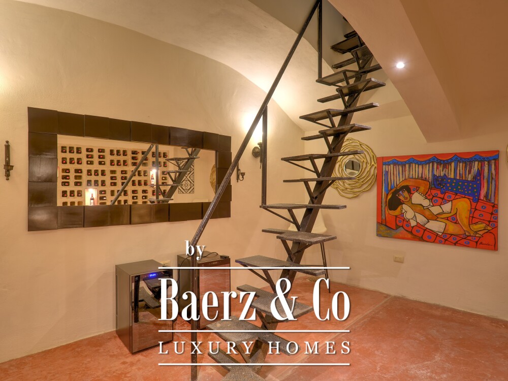 Три спальни и три ванные комнаты расположены с особым вниманием к приватности, и дополняются крытой парковкой. Интерьер сочетает современный уют и функциональность: просторная кухня для гурманов с островом и отдельный винный погреб. Панорамные окна от пола до потолка наполняют дом светом и объединяют внутренние помещения с пышными тропическими садами.