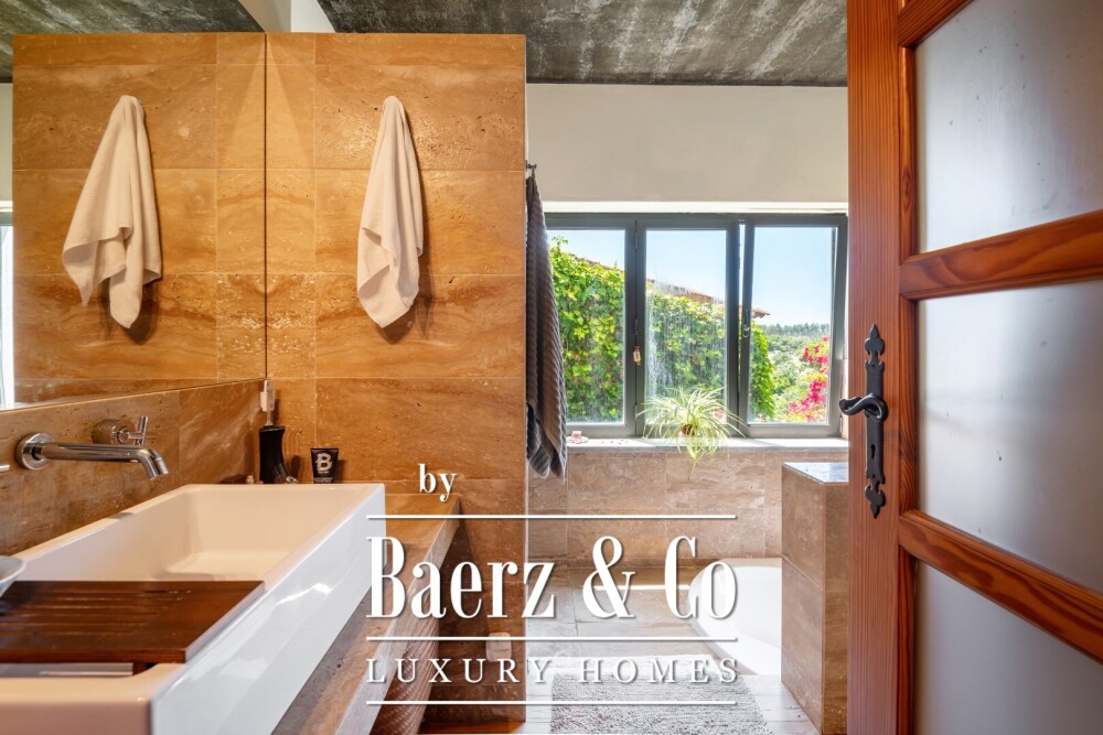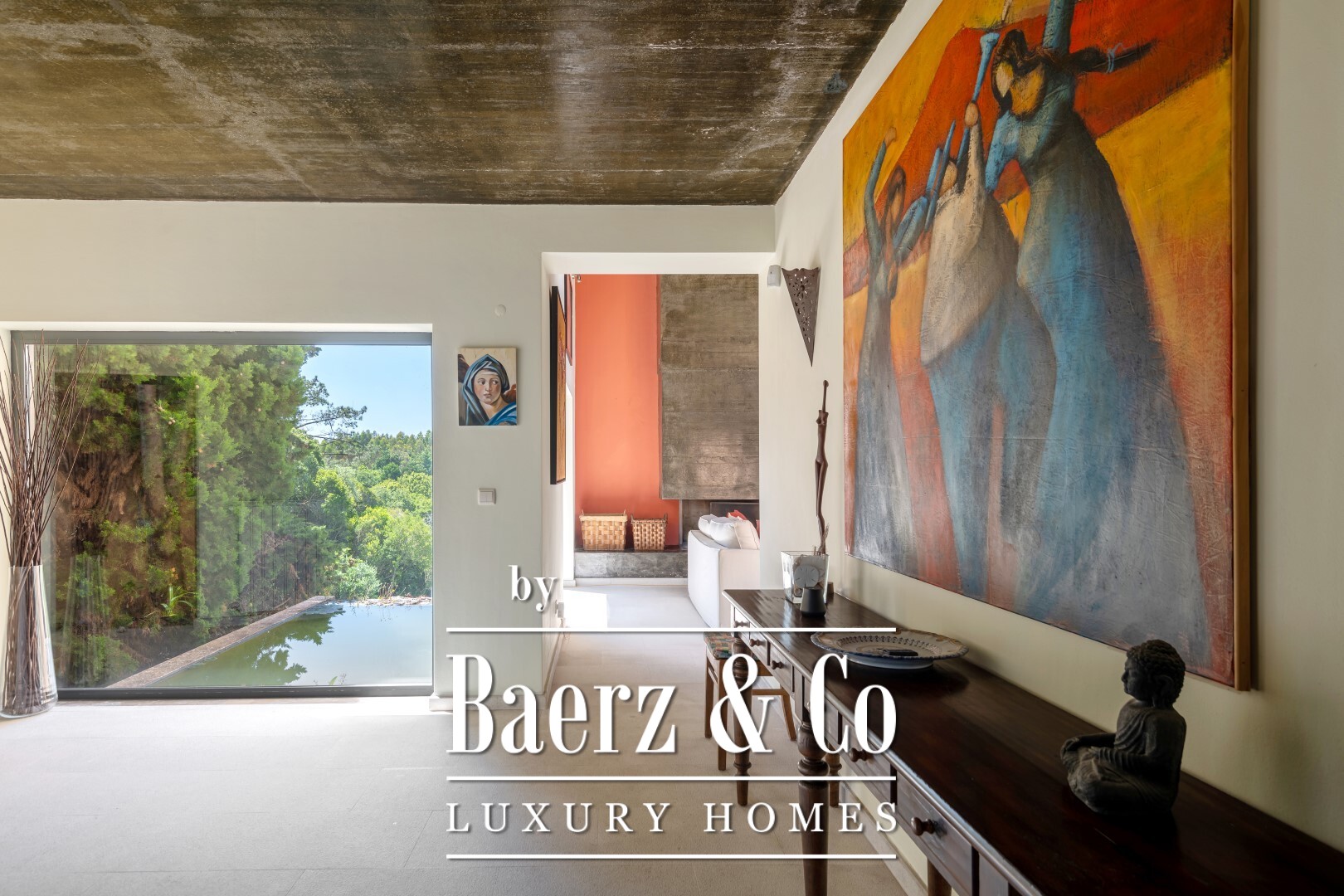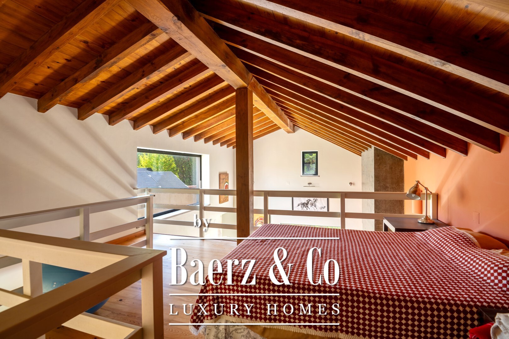 Дом Reguengo Grande уединённо расположен на окраине Луриньи, окружён частными участками и лесом площадью 8 650 м². Это место создает атмосферу уединения, где свет и простор формируют ежедневный ритм жизни. Общая жилая площадь — 275 м²: традиционная португальская архитектура гармонично сочетается с современным, открытым пространством — просторная гостиная с выходом на залитую солнцем террасу, три большие спальни, включая люкс с гардеробной, а также отдельные апартаменты для гостей.