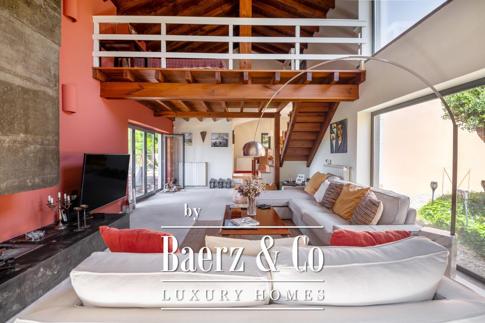 Кухня плавно переходит в гостиную и ведёт на террасу и ухоженный сад с бассейном, откуда открываются широкие панорамные виды на сельскую местность. Центральное отопление во всём доме и изысканный дровяной камин обеспечивают комфорт в любое время года, а окна из ПВХ с двойным остеклением, поворотно-откидным механизмом и ставнями отражают внимание к деталям.