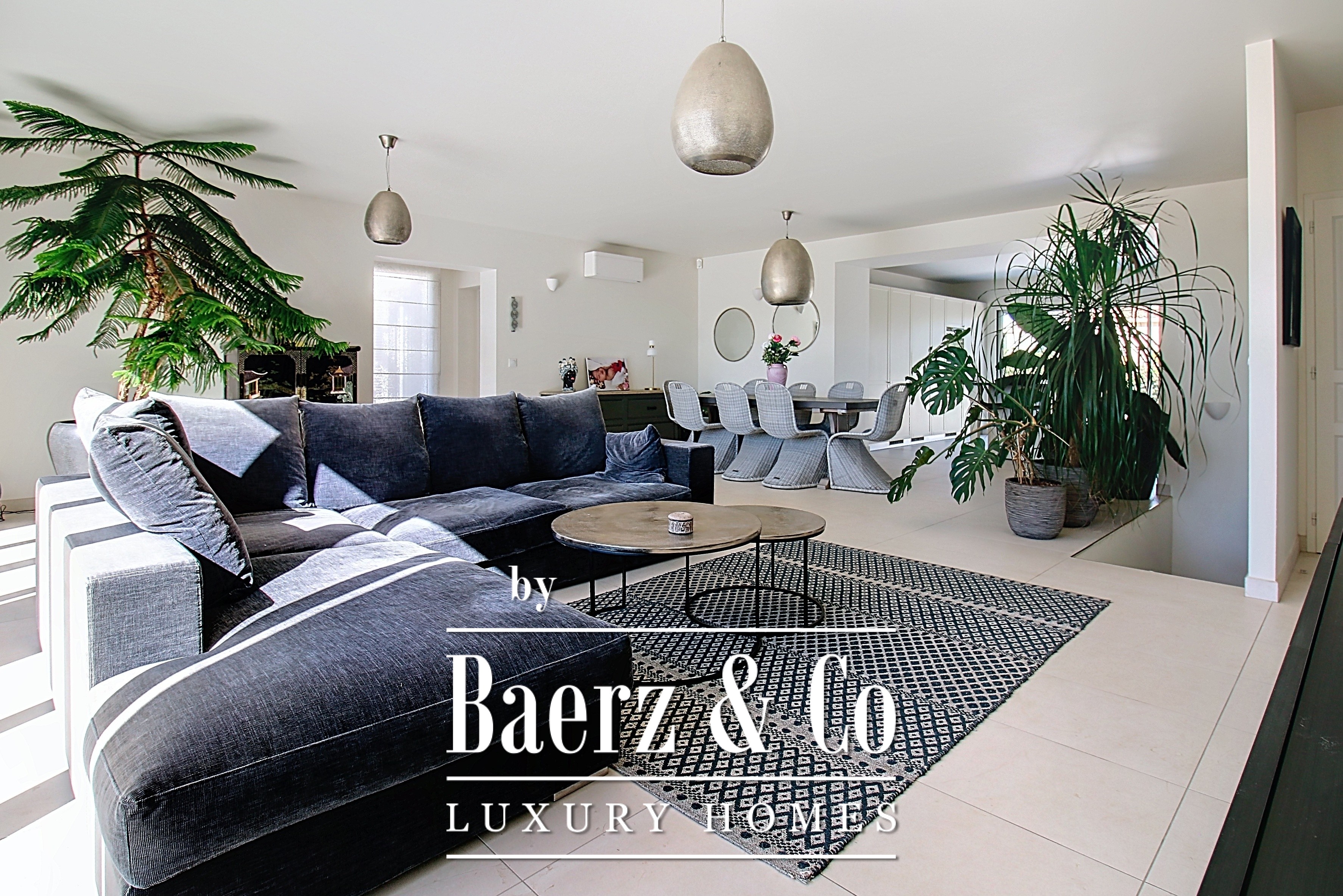 Открытые пространства впечатляют: 275 м² террас и панорамный бассейн, уходящий к морю. Участок в 1 330 м² обеспечивает уединение и ощущение умиротворения, а гараж органично встраивается в общий функционал. Эта роскошная вилла на продажу в Сен-Рафаэле воплощает атмосферу спокойствия, современного качества и вечного притяжения средиземноморского побережья.