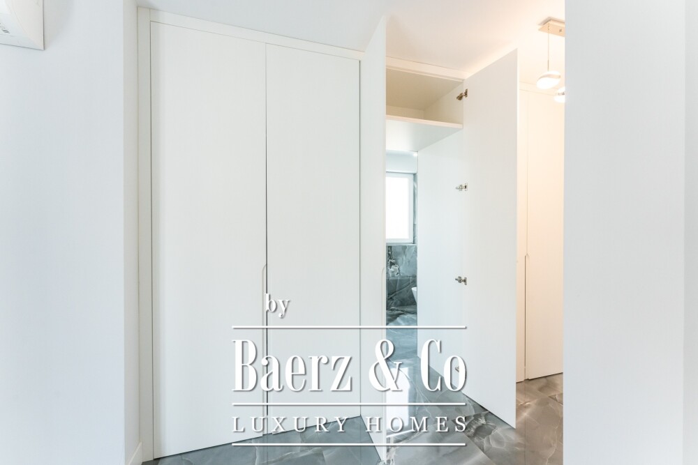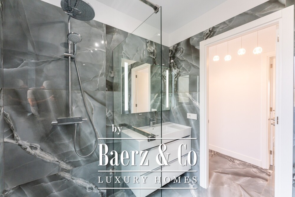 住宅建筑面积198平方米,坐落于440平方米地块上,布局包括四间卧室,每间均带独立卫浴、洗衣房以及半开放式厨房,与宽敞的起居空间自然衔接。落地大窗引入充足自然光线,室内外融为一体,营造出宁静与澄澈的氛围。精选材质贯穿每一细节,匠心品质尽显于形,却从未张扬。