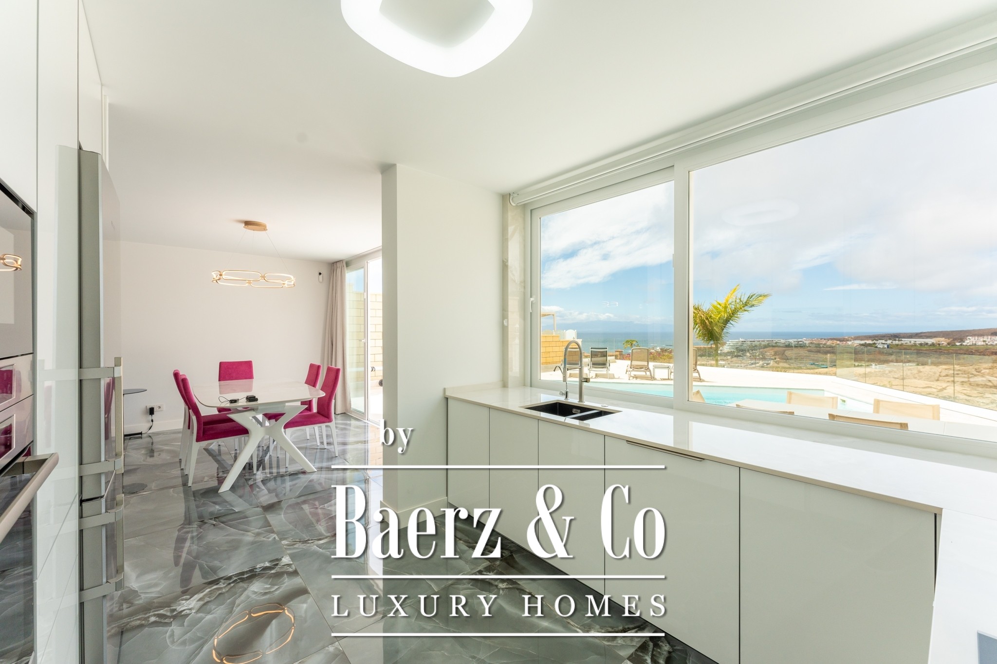 私人花园环绕着露台,恒温泳池可饱览海洋与山峦的全景。中央空调和专属车库进一步提升居住舒适度。距特内里费南部机场仅需20分钟车程,这座待售的豪华平层别墅,坐拥Costa Adeje核心地段,低调奢华,极致考究,是追求隐私与卓越设计人士的理想之选。