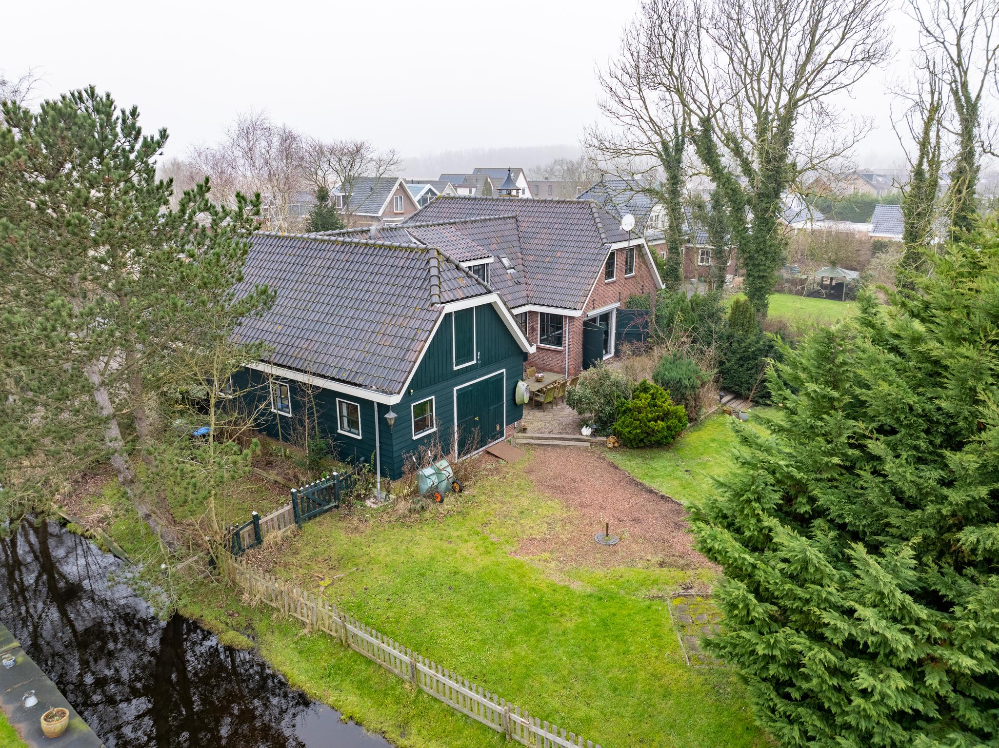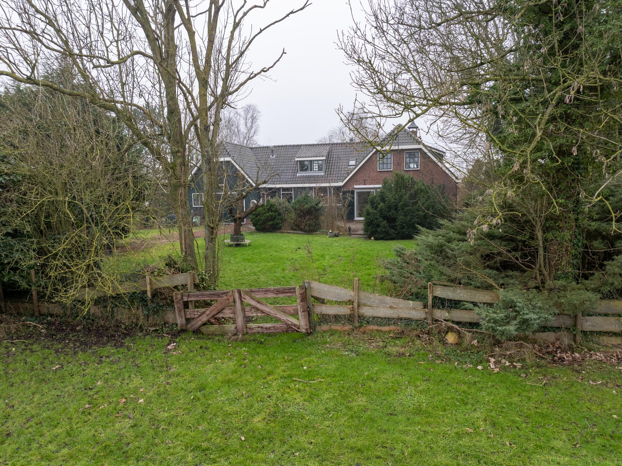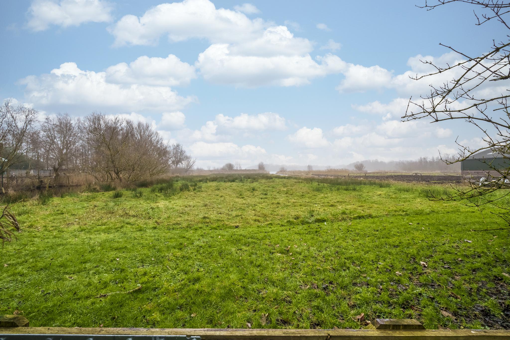 De kavel is echt goed ingedeeld. Een oude bomen opstand rondom het woonerf en en een open boerenweide aan de achterzijde. Sloten rondom, dus ideaal voor het houden van dieren op het erf, of wandelingen met je hond op je eigen terrein.