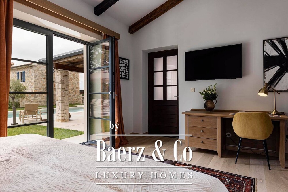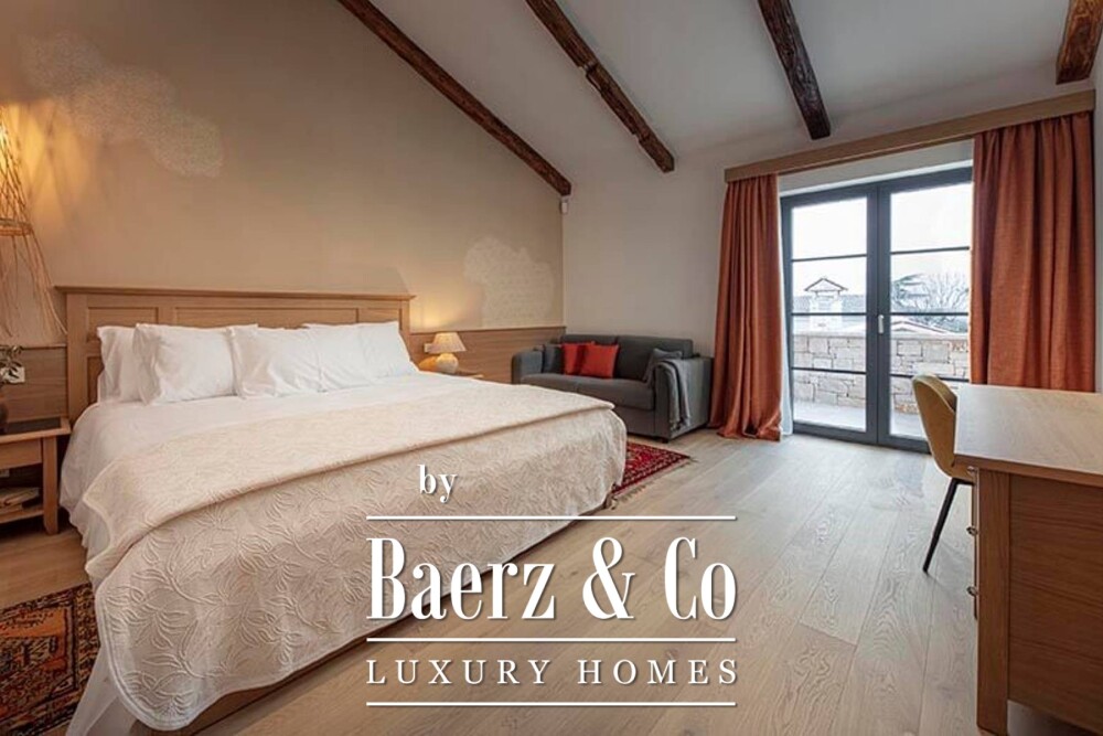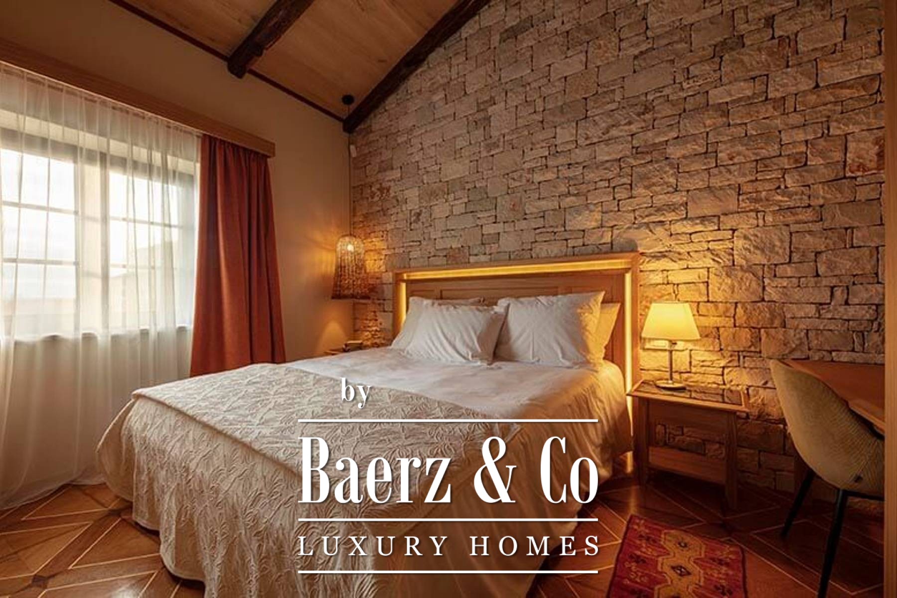 克罗地亚Kanfanar别墅珍藏罕见的石制别墅群,总建筑面积1,561平方米,静卧于2,930平方米的宁谧地块上,环抱于未经打扰的伊斯特拉乡村风光。距离仅十五分钟车程的利姆运河,可遥望海景与著名的生蚝,而庄园本身则确保完全私密,以传统2,000平方米干砌石墙划界,绿丘及成熟园林的和谐韵律尽显从容。
