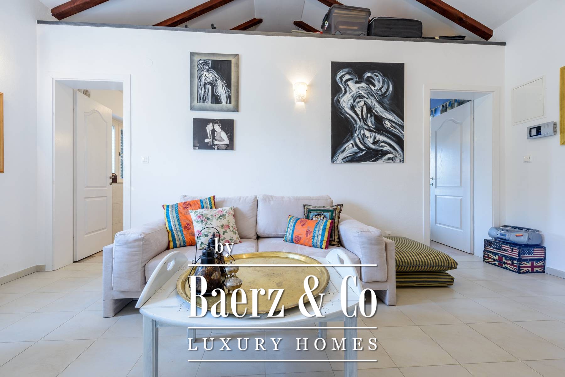 主别墅内部空间达310平方米。底层布局流畅,包括宽敞的客厅、精致厨房、用餐区与卧室,皆沐浴在柔和的地中海光线中。楼上设有两间卧室,每间均配备独立阳台与卫浴,极适合放松身心;书房则为静思或工作提供专属空间。