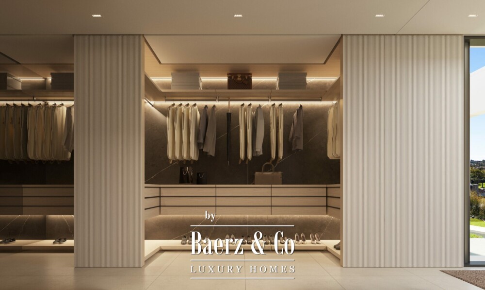 户外空间与室内动线自然延展,设有两座泳池、优雅的水景以及精心打造的休闲廊区。屋顶露台是精致款待的核心,配有全套户外厨房、用餐及休憩区,还有露天影院,皆面朝高尔夫球场与山谷天际线。独立的球车车库直接通往果岭,出行更为便捷。