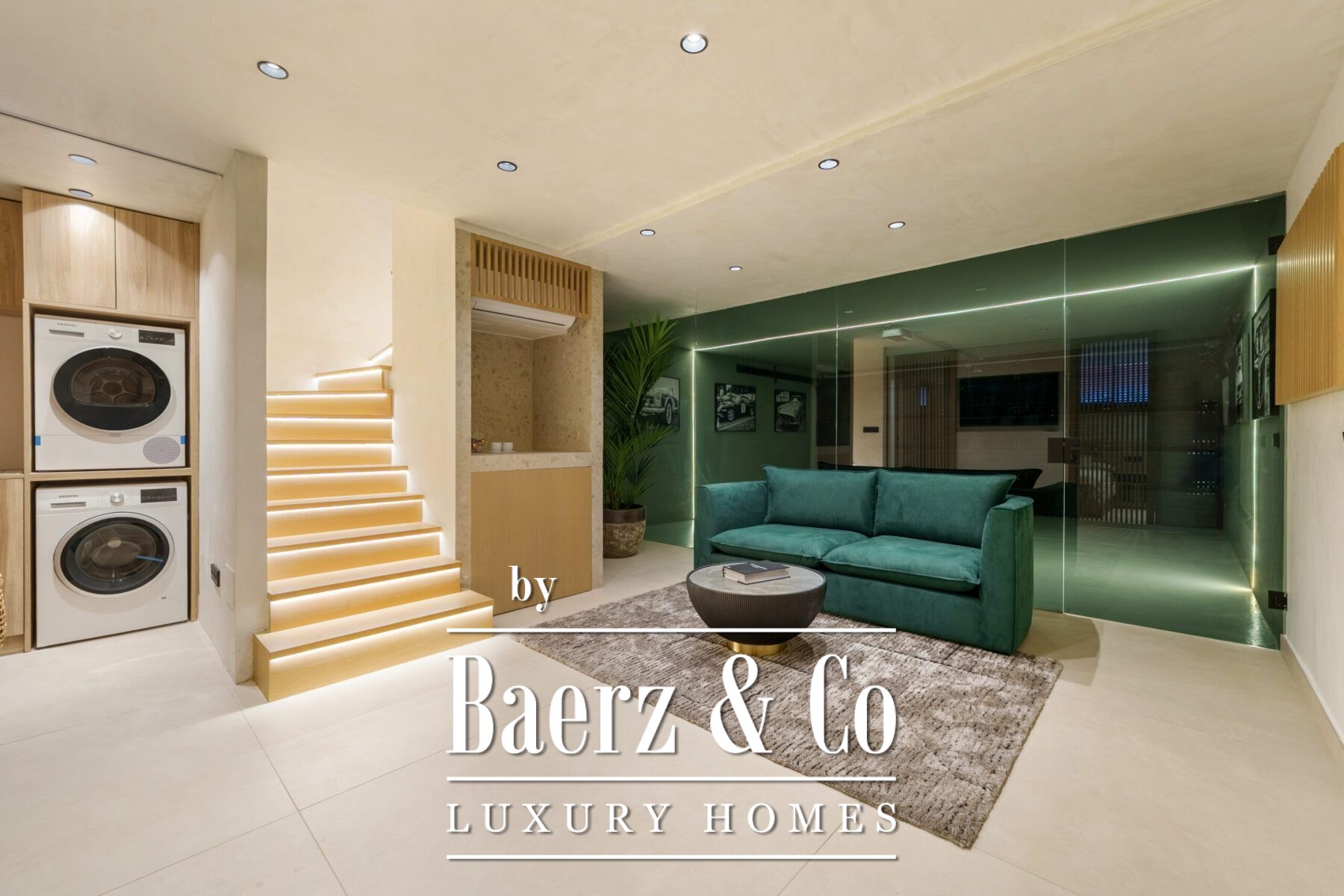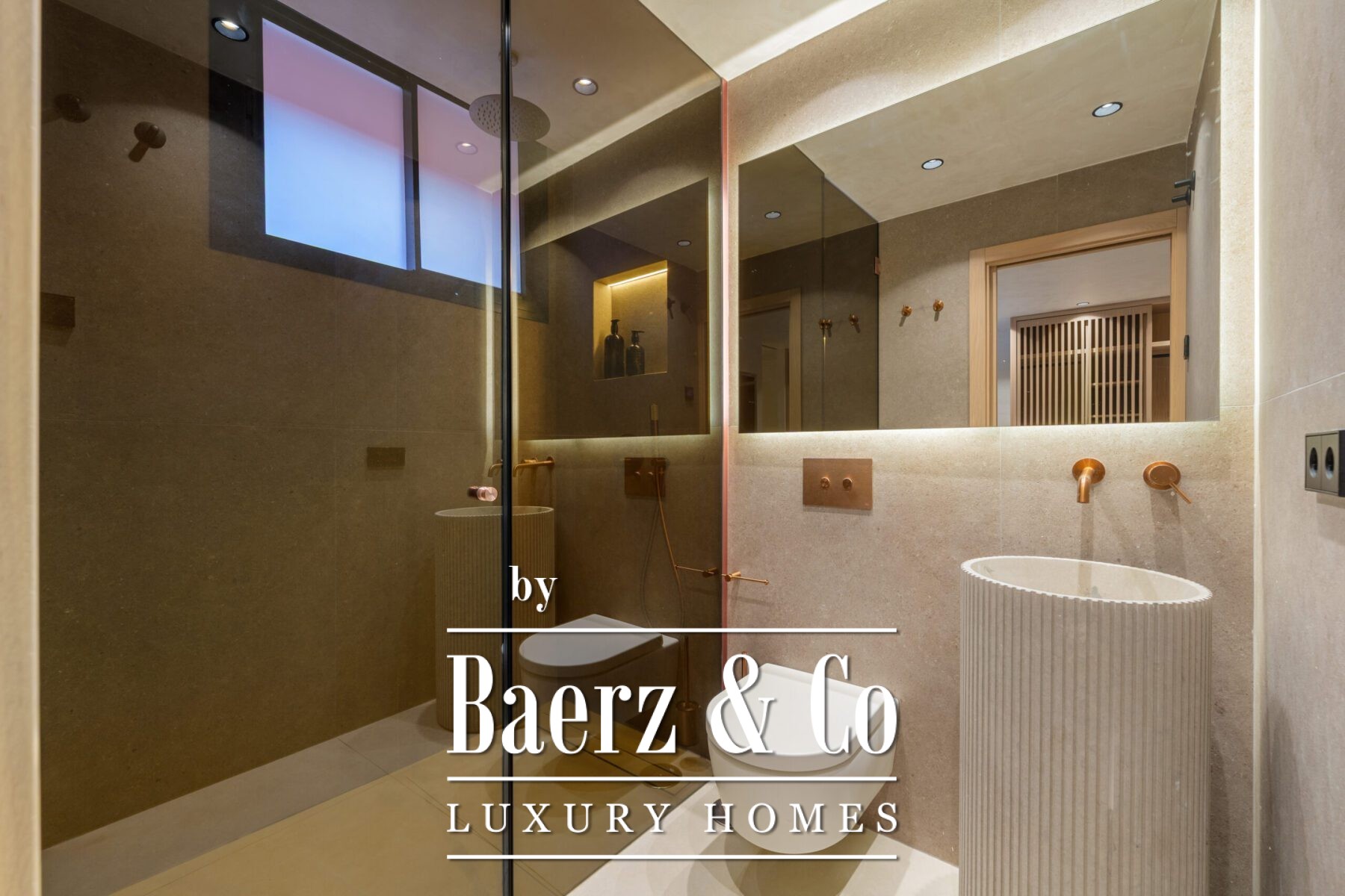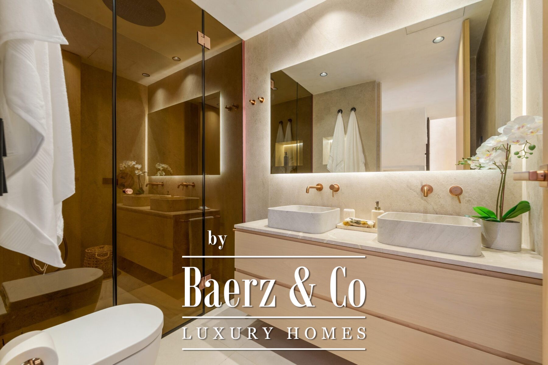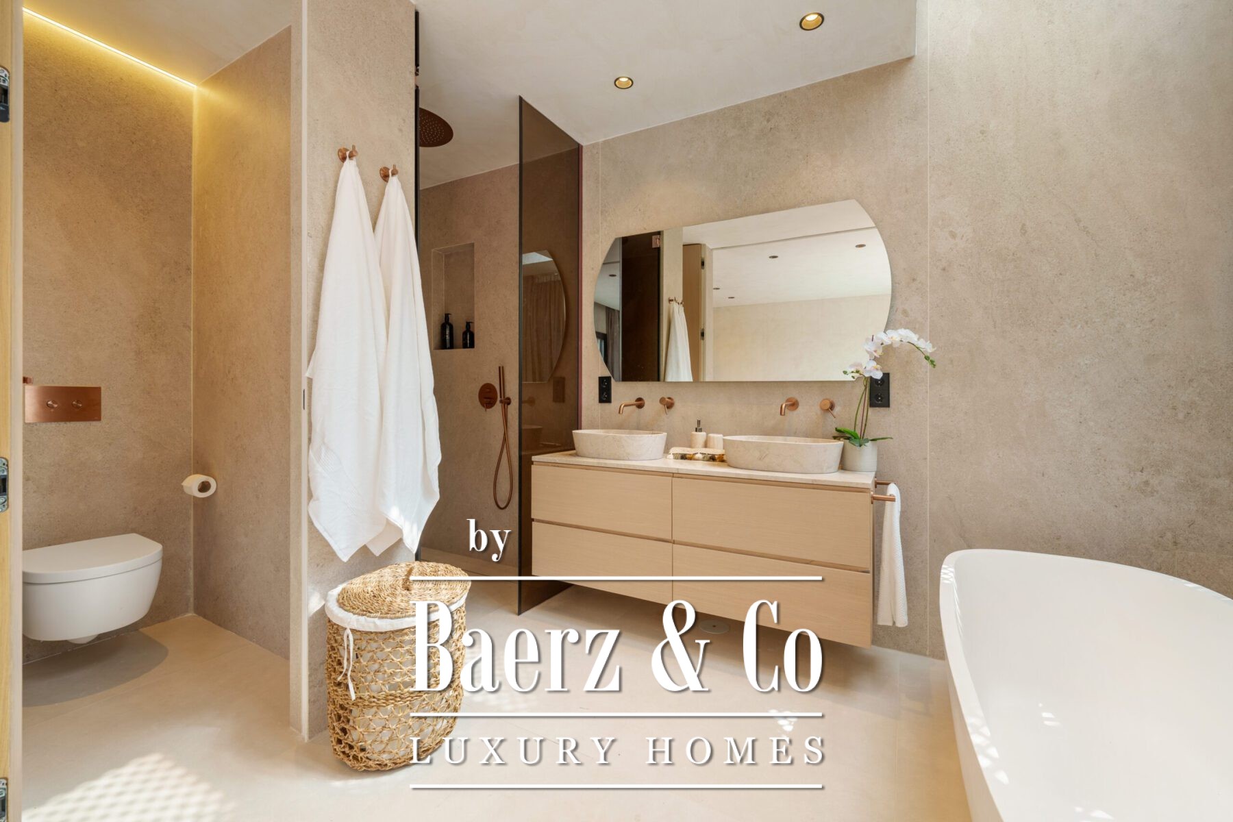 上层设有宽敞卧室,包括带步入式衣帽间及精致套内浴室的主卧。多层露台为静谧清晨与活力夜晚提供多样选择,屋顶阳光露台配备内嵌烧烤区、按摩浴缸,可尽览山色与园景。私家车库、24小时安保,以及空调、地暖等先进配套,尽显对舒适与便捷的专注。