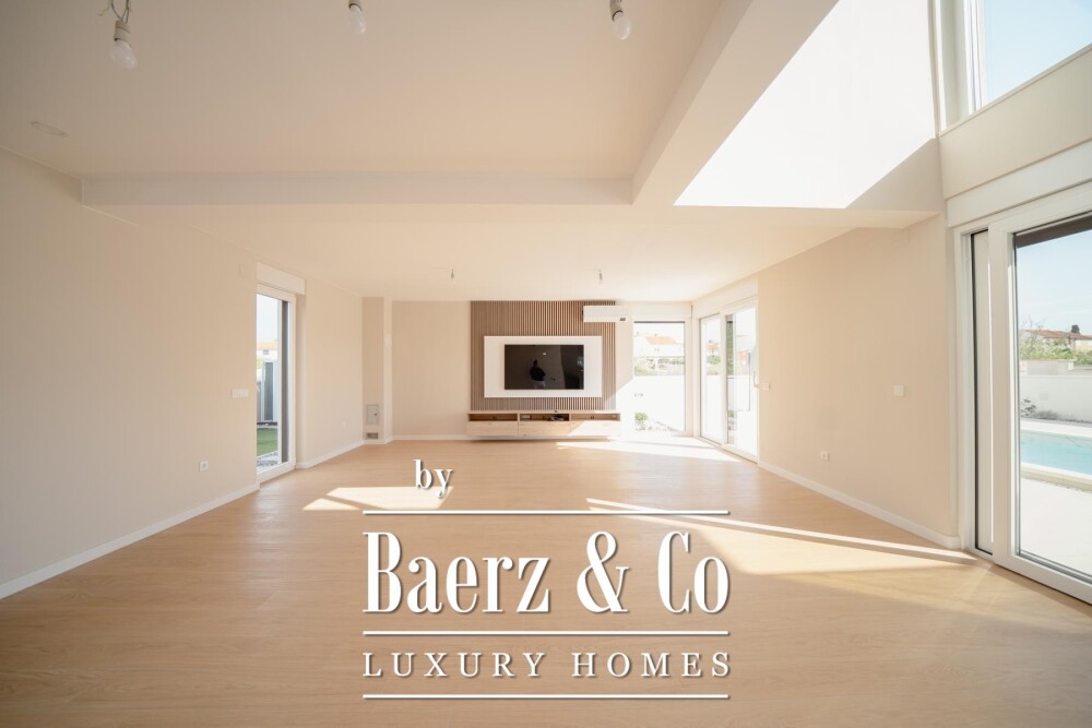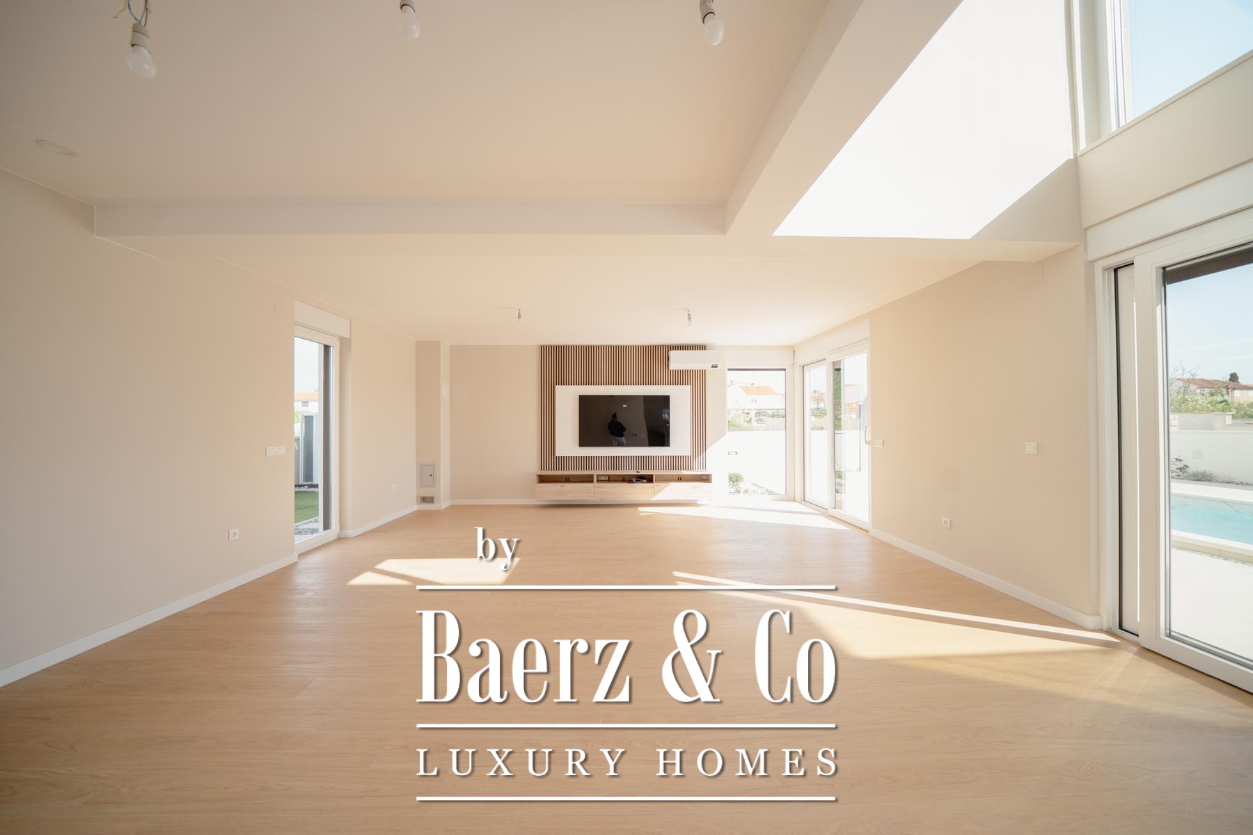 底层布局舒展,客厅借助大面积玻璃窗引入充足自然光,聚焦于现代厨房和用餐区。两间卧室及一间浴室完善了本层布局,所有空间通过带顶露台无缝衔接户外。室外区域以 8 × 3.5 米游泳池为核心,配备带顶夏季厨房和烧烤区,营造地中海式的悠闲夜晚氛围。