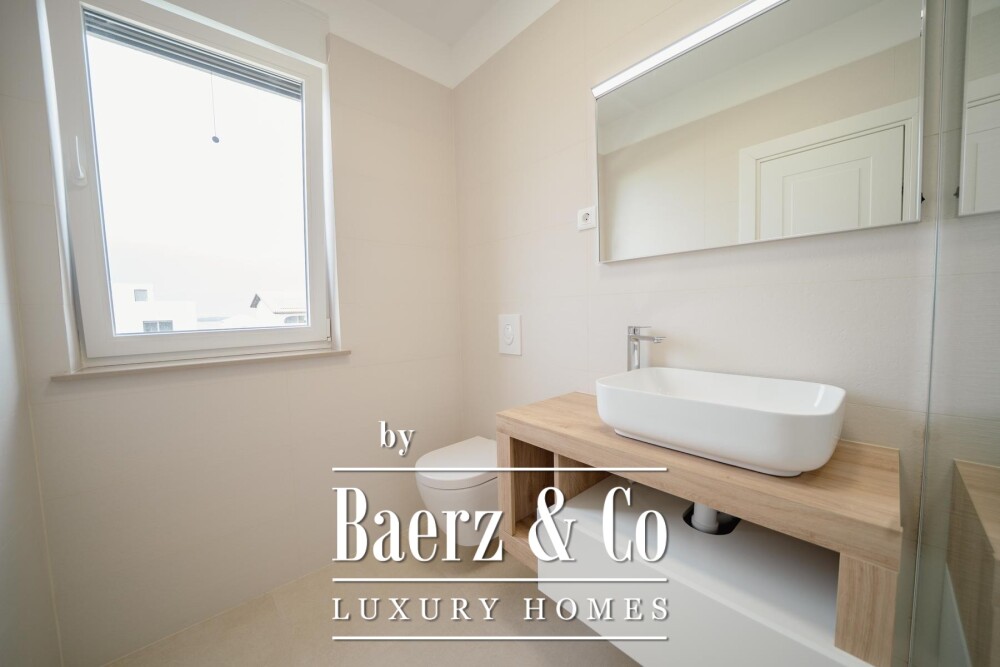 二层设有三间带独立卫浴的卧室,其中主套房配备专属更衣间。两间卧室通向各自的露台,可欣赏淡雅的海景,并感受静谧的环境。地暖系统由热泵驱动,每个房间均配有空调,电动卷帘及周到的隔热设计,确保全年舒适高效。