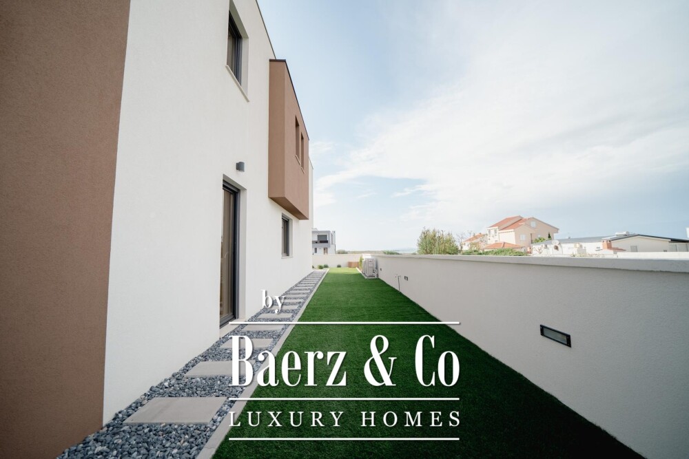 Privlaka 克罗地亚联排别墅是一处现代风格住宅,距离亚得里亚海沙滩仅300米,为注重私密和精致生活的人士用心设计。该物业占地 448 平方米,总建筑面积188平方米,分布于两层开阔通透的空间,整体营造出协调的空间感与自然采光。