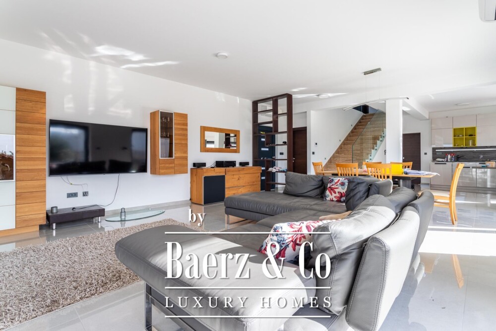 该物业于2022年竣工,现以全套家具与设备出售,为追求精致度假居所或寻找战略性租赁资产的买家提供无缝入住可能。底层空间宽敞开放,配备开放式起居区、配置平衡的厨房与餐厅,另设有浴室、车库及两间储藏室。二楼设有四间卧室,其中两间为套房,另有一间独立卫浴。登上三楼,专属健身区、额外卫浴及一座大型朝海露台映入眼帘,整日尽享地中海光影。