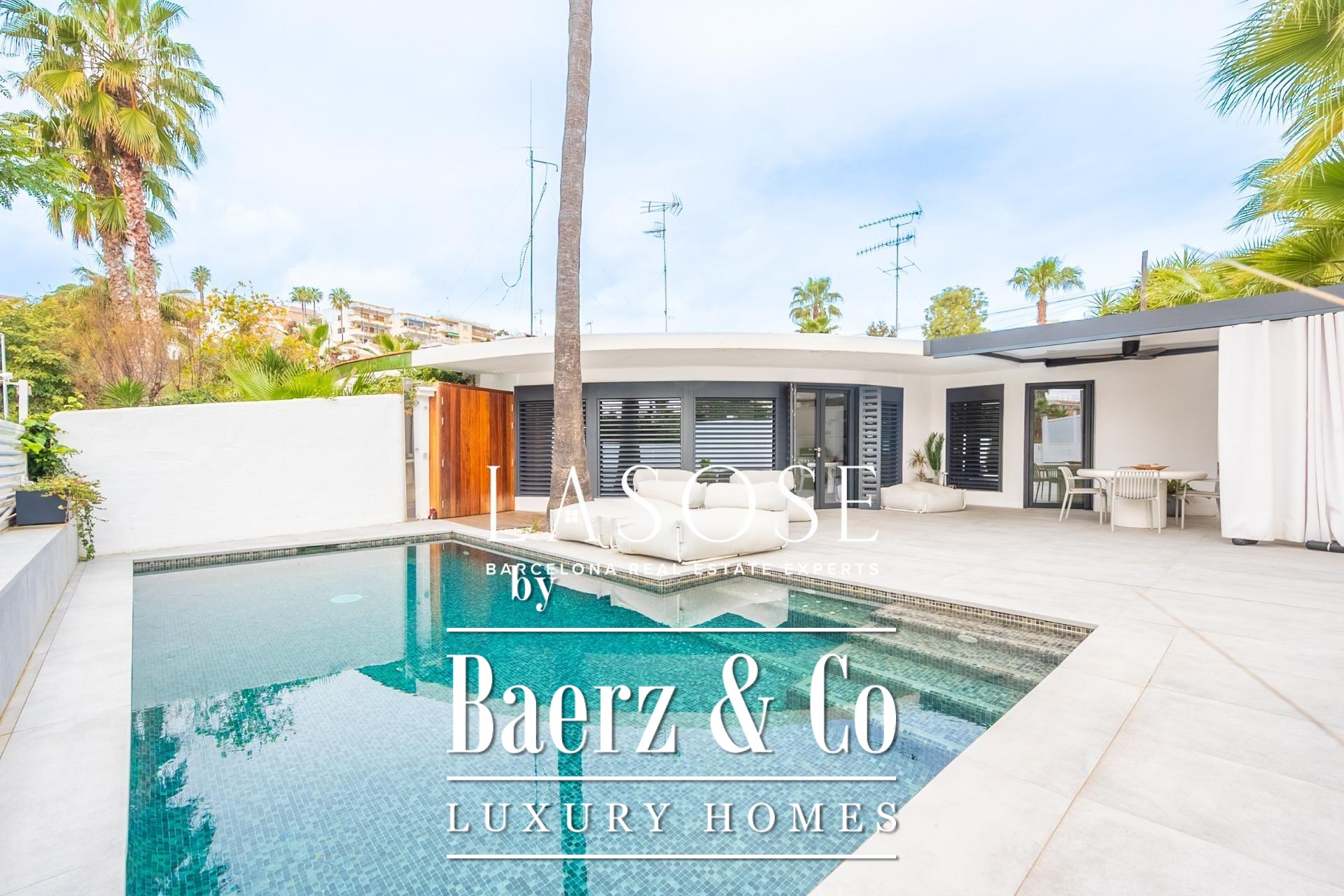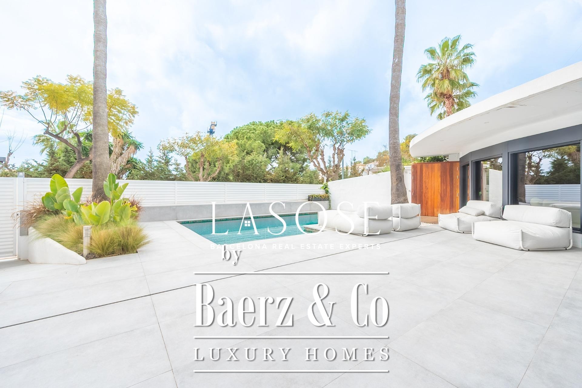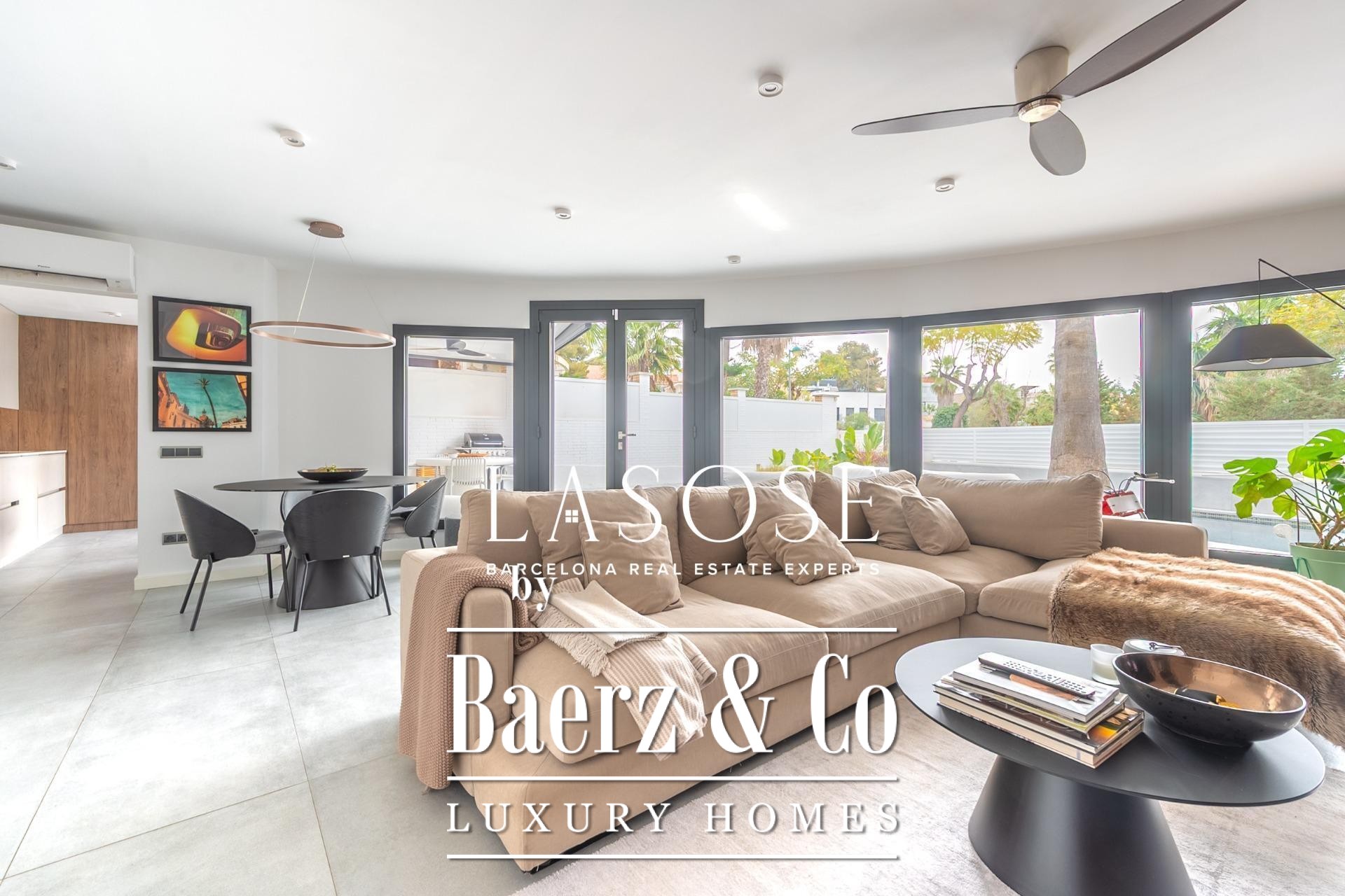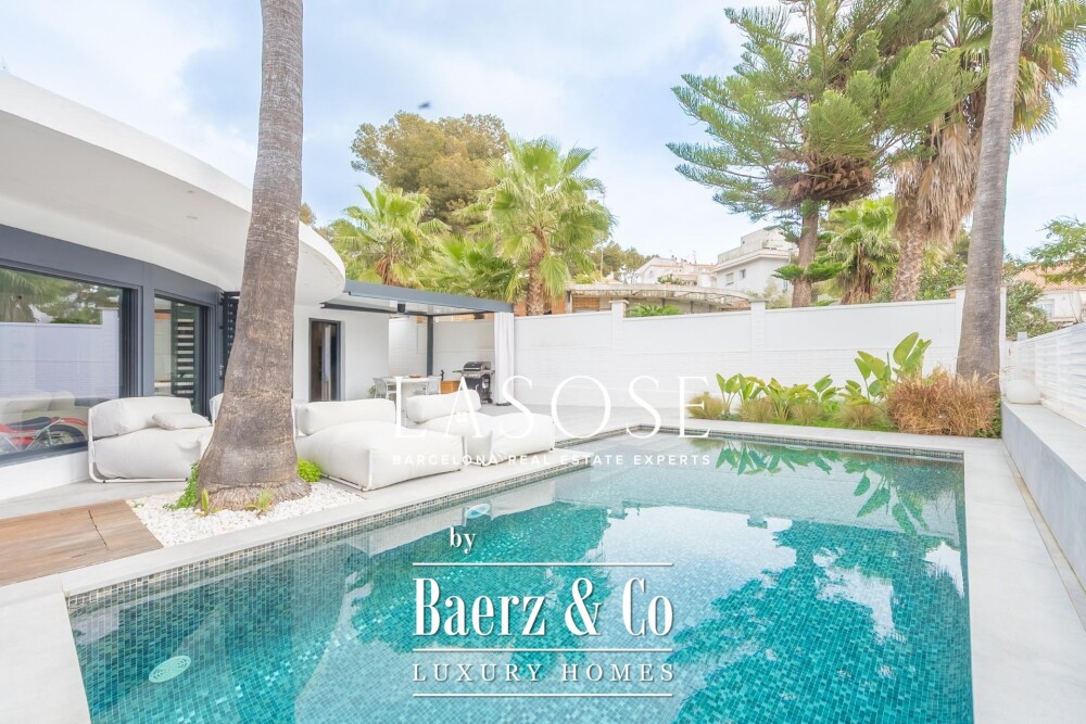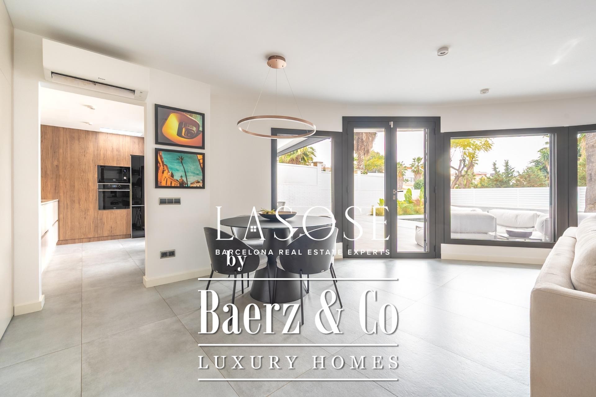 Villa Sitges Vallpineda 在静谧的住宅区营造出现代地中海优雅生活。这栋100平方米的单层别墅经过全面翻新,严格遵循当代标准,拥有两间卧室与两间浴室,与宽敞的起居空间和谐衔接。物业占地278平方米,被高大棕榈树环绕,享有开阔视野,静谧的室内与户外环境自然流畅地融合。落地窗为主要的客厅和餐区带来充足采光,与露台和私人泳池无缝贯通,既适合家庭聚会,也宜静享时光。